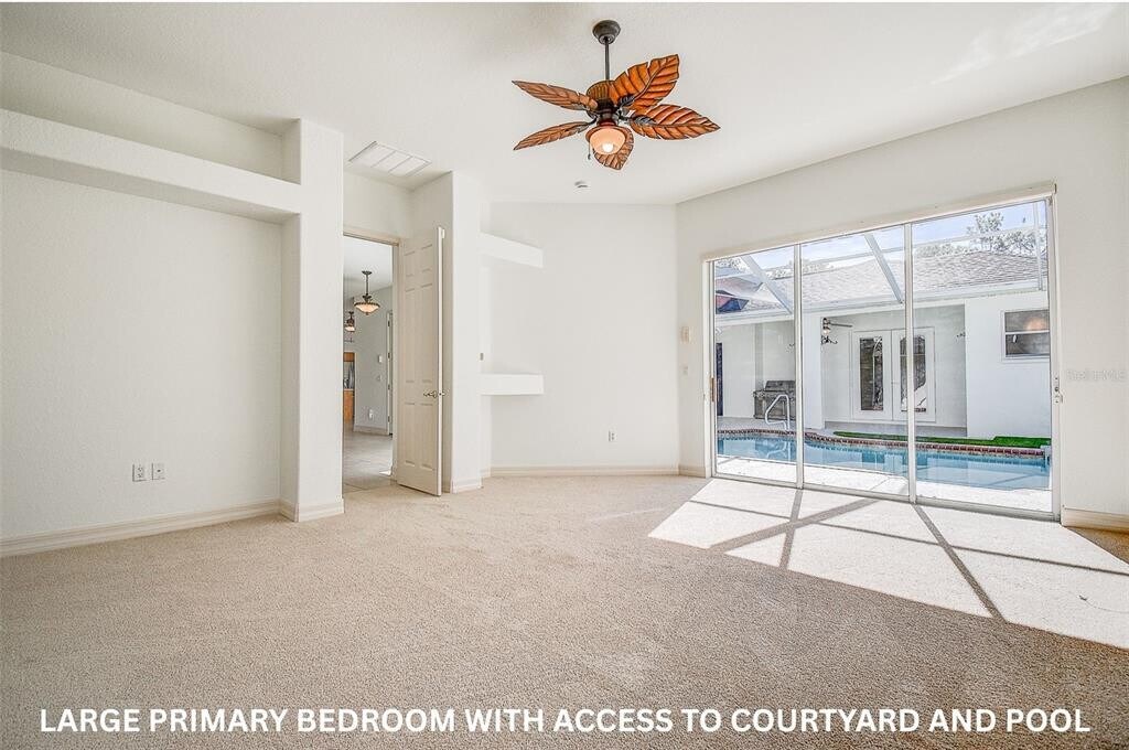 Escape to the perfect blend of country serenity and modern convenience in this beautiful 4-bedroom,3-bathroom home ideally located in the desirable city of Wesley Chapel,FL. The spacious main house has 3 bedrooms,2 bathrooms and separate 1 bed,1 bath suite,ideal for visitors,multi-gen or home office. Love to entertain? The screened in courtyard and pool,perfect for year-round enjoyment,separates the main house and guest suite with a commercial BBQ setting the stage for unforgettable gatherings and color-changing skies at sunset. Pool maintenance is included for your convenience. The grounds are beautifully landscaped,abutting a canal and providing a serene and inviting outdoor space. The property also includes a water softener system,ensuring the best quality water for you and your family. Professional lawn care is also included,allowing you to enjoy the beauty of the 1-acre grounds without the hassle of the maintenance. Fresh paint and new carpet make the home bright and move-in ready. With no HOA restrictions,you can use the spacious 3-car garage,long private driveway,and sprawling 1-acre for vehicles,boat,RV,toys,or extra storage,a rare find. Explore amenity rich living with the casual to upscale dining scene,shopping,golf,tennis,and pickleball facilities,nearby hospitals,and healthcare. Clearwater Beach is less than an hour drive and Tampa is less than 30 minutes. This home makes coming home the best part of your day combining comfort,convenience,and luxury. A perfect choice for those seeking a high-quality living experience. Call today to schedule your tour. MLS# TB8452640