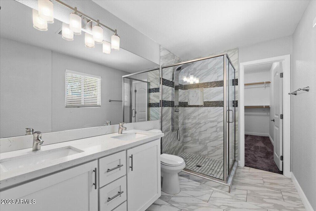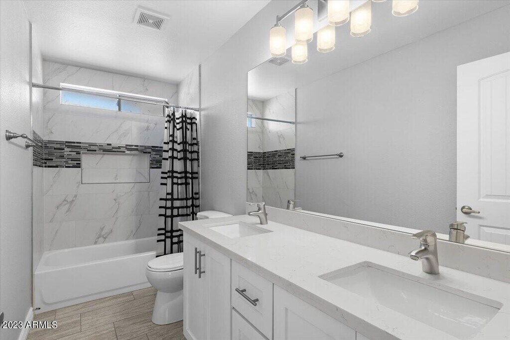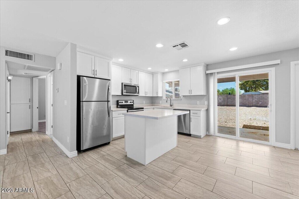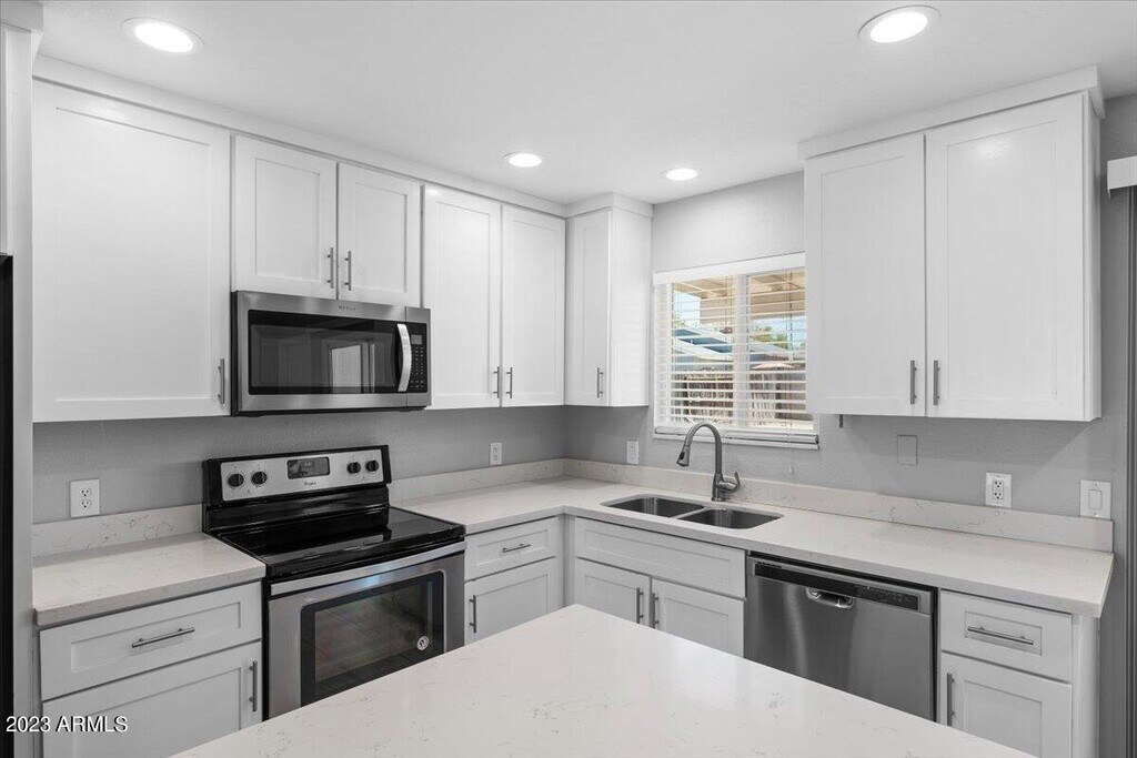 Great location near Chandler Fashion Mall. Freeway access just off McClintock onto the 202. 3 BR 2 BA with an open floor plan. REMODELED. Wide luxury tiles. White Kitchen with quartz countertops,and SS appliances. Carpet will be in the bedrooms. Primary bedroom with barn door en suite bathroom. Double sinks,quartz counters,ceramic marble tile floor,oversized glass shower and walk in closet. Hallway bathroom with double sinks and quartz counters,The tub is remodeled with gray backsplash tile and ceramic marble tile walls. Patio opes up to an oversized backyard. The backyard even has a shed for outside storage. The carport includes a wide gate to the back yard. Non-Smoking.
