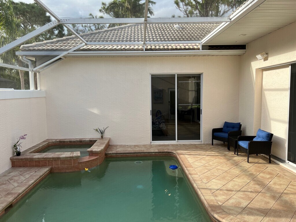 Pelican Landing!! This newly redecorated 2+ bedroom 2 bath home located in Heron Glen at Pelican Landing features newer furnishings, paint and carpet. Formal dining area, eat-in kitchen, laundry room, 2-car garage, study/office with queen sized sleeper sofa, king size master and king size guest bedroom. Enjoy the private, caged, heated pool and spa located outside both bedroom doors with a second lanai overlooking the preserve with outside dining, tv and lounging area. Explore all the amenities Pelican Landing has to offer. Take the boat shuttle to the exclusive 34-acre private island beach with library. The Sailing Center offers canoeing, kayaking and sailing, Tennis Center with pro, pickle ball, bocce, fitness center, community center with many hosted activities, fish the island beach, Spring Creek, and the many designated fishing lakes, or visit the butterfly nature garden. Walking distance to dining and shopping. Close to the Coconut Point Mall, Coconut Point Hyatt Resort and the soon to be constructed Ritz Carlton Resort. Includes extensive cable selection, internet, electric, water, trash, pool care and lawncare. Gated community, completely furnished, sleeps up to 6. December 1 2025 - June 1 2026 $8000.00/Mo. 4 month MINIMUM lease or more ONLY. $250 HOA application fee. $200 cleaning fee. $1,000.00 damage/security deposit. Leases less than 6 months add 11.5% tax.