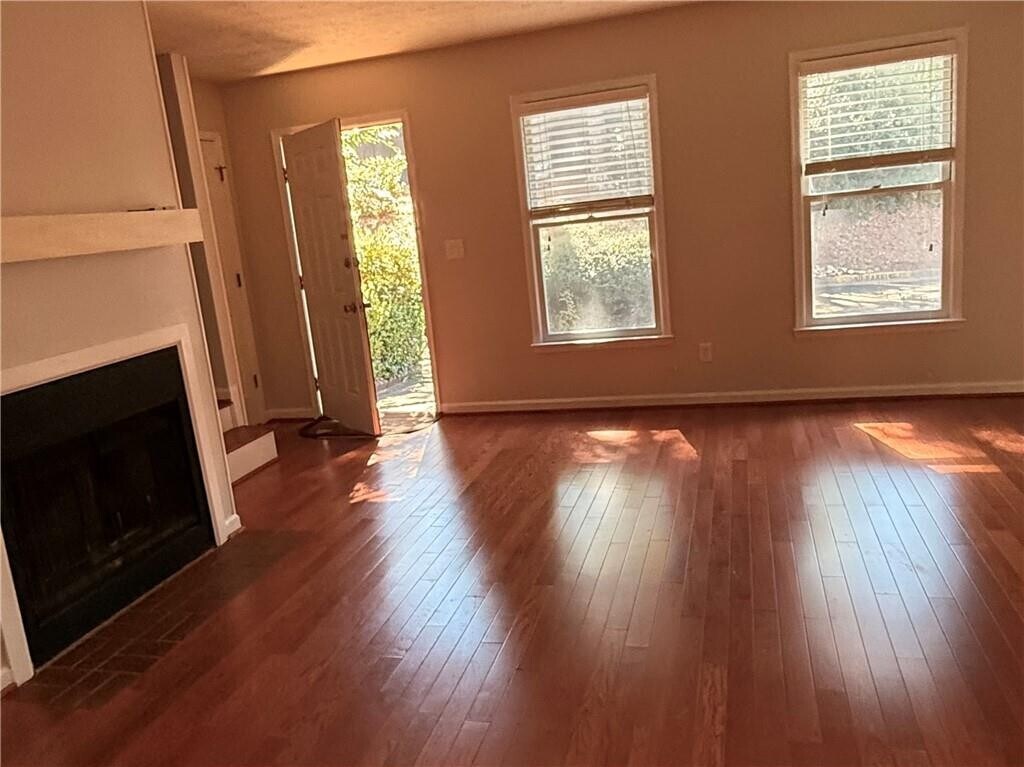 This completely updated private END UNIT townhome is move in ready the first week of December. This home features a real fireplace for ambiance,hardwood floors and lots of natural light throughout. Fantastic Kitchen with beautiful white cabinets,designer backsplash,gorgeous solid surface countertops and a breakfast bar. Half bath on main level for convenience. Access to a lovely rear patio. Upstairs bedrooms both have their ownupdated baths. Unit comes with a washer and dryer. Covered parking for two at rear entrance. Woodehaven is a quiet,well maintained townhome community with a pool and tennis courts in a truly beautiful setting. The community is proud to have it's own picturesque lake with a dry dock and several well manicured green space areas for rest and relaxation. Great access to schools,shopping,parks,etc. This is the one you have been waiting for.