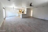 Welcome to this stunning 3-bedrooms,2-baths single-family home perfectly situated in the heart of Prescott Valley! From the moment you walk in,you'll love the bright and open layout filled with natural light. The spacious living area is warm and inviting,flowing seamlessly into the beautifully updated kitchen. Featuring sleek stainless steel appliances,a breakfast bar,and ample cabinetry,this kitchen is perfect for both everyday living and entertaining. Recently upgraded with stylish vinyl flooring throughout,the home feels fresh,modern,and easy to maintain. The primary suite is a true retreat,complete with charming barn doors that lead to your private bathroom. Ceiling fans are thoughtfully placed throughout to keep you cool and comfortable year-round. Step outside through the fresh doors in the dining area to your expansive backyard,offering plenty of room to relax,entertain,or garden,plus a handy storage shed. A 2-car garage and convenient washer and dryer hookups add to the everyday functionality of this gorgeous home. Located just minutes away from medical facilities,shopping centers,restaurants,and community parks,this home offers not only beauty but also unbeatable convenience. Enjoy nearby trails,outdoor recreation,and all the amenities Prescott Valley has to offermaking this an amazing place to make your home! Sorry NO PETS allowed!