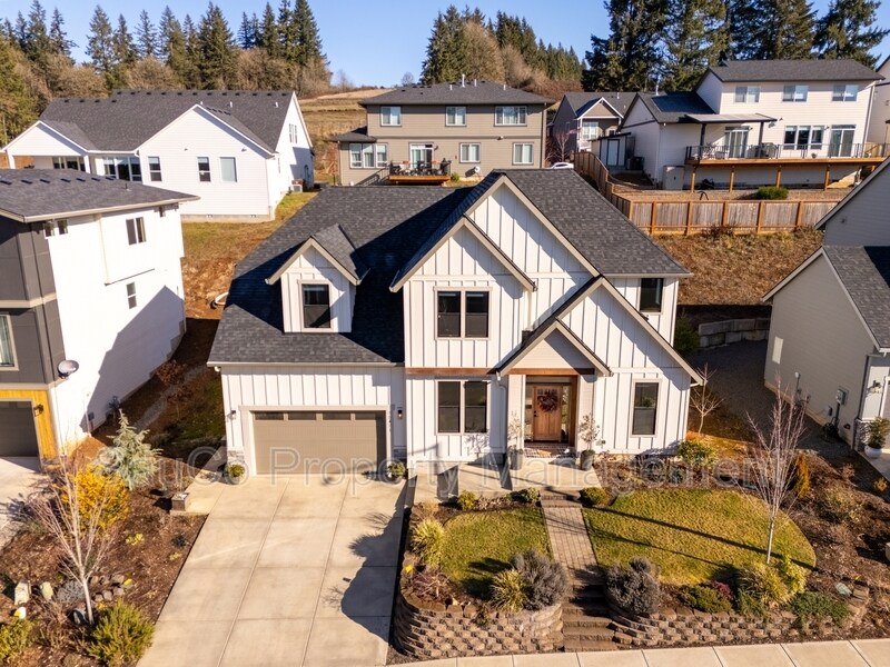 Check out this stunning 4 bedroom home in the Elk Ridge neighborhood in St Helens! This gorgeous farmhouse-style home has amazing features throughout. As you enter, there are hardwood floors that flow throughout the entire unit. 9 foot ceilings on both levels! To your left as you enter, there is a bonus room that can be used as a den or office! Large windows with a privacy film throughout, allowing for lots of natural lighting. The kitchen is fully equipped with quartz countertops, eating nook, large oversized pantry, siligranit kitchen sink and stainless steel appliances included! The two car garage includes shelving and professional floor coating. Upstairs you will find an oversized primary suite with a bathroom en-suite with tiled flooring, double sink vanity, soaker tub and separate shower! 3 additional bedrooms and laundry room found on this level as well. The backyard included an expanded back patio and low maintenance backyard. No smoking/vaping Pets Allowed: Yes, with additional deposit and pet rent. Limit 2. Breed restrictions apply. HOA Rules: Yes Lease terms: 12 months. Residents responsible for all utilities and backyard lawn maintenance. HOA maintains front. Renters insurance required for qualifying residents. Disclaimer: Photos may be from a previous listing. All information, regardless of the sources, is to be deemed reliable but should be independently verified and is subject to change. For applications and rental criteria, and dog breed restrictions, please visit our website!