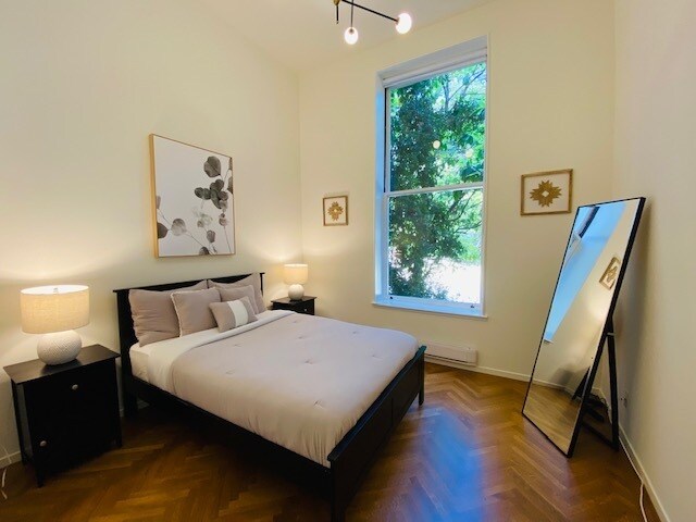 Constructed in 1926, the building is a Spanish Revival landmark listed on the National Register of Historic Places. This unfurnished 1 bedroom, 1 bath condo has a beautiful &; spacious floor plan, 12' ceilings and extra-tall windows in every room with excellent light and views of Buena Vista Park, within 10-minutes to popular spots (Golden Gate Park, NOPA corridor, Cole Valley, Duboce Park and Haight Ashbury) and a short 5 min drive to UCSF. Pet friendly. This building has a doorman, (signs for packages), shared sky deck with city and water views and a huge common space with beautiful stain glass windows...perfect for hosting parties or special occassions too! Plus it comes with an extra large storage closet and gated carport parking! Rent is $4,200/month unfurnished. Available November 25thApartment Amenities:Doorman building, gated entranceOne carport parking spot includedExtra large storage locker is included12' ceilings and extra-tall windows in every room with excellent light and views of Buena Vista Park.Main level (high above the street) Washer and dryer in the building on the same floorLarge hall closet with adjustable organizerAppliances: Built-in Electric Range, Built-in Refrigerator, Disposal, Hood Over Range, MicrowavePets allowed (size restrictions/additional deposit)Building Amenities:Next to 2 major parks (Buena Vista park, Corona heights) with excellent hiking, city and bay views, also Golden gate park and Randall children's museum is walkable and multiple dog parks!Skydeck (open terrace) located on the 7th floor that has views of the entire city/downtown/bay with BBQ and seating bus stops close by at Divisadero/Haight (0.4 mi) and 16th/Sanchez (0.8 mi), easy access to public transport for SF offices, Muni Bus stop next to building (Stop is Buena Vista Ave E and Buena Vista Terrace on the Corbett line)Convenient access (less than 5 min) to Castro, Cole Valley, Duboce Park and Haight Ashbury shopping and dining, short drive to UCSF (5 min) and Divisadero CorridorAmple street parking for guests in the front of the buildingConstructed in 1926, the building is a Spanish Revival landmark listed on the National Register of Historic Places. Magnificent community room in historic former chapel building with stained glass and high ceilings and muralsThe location speaks for itself - Google it! If you'd like to tour TEXT me. Available November 25th. Stop looking and Start living!