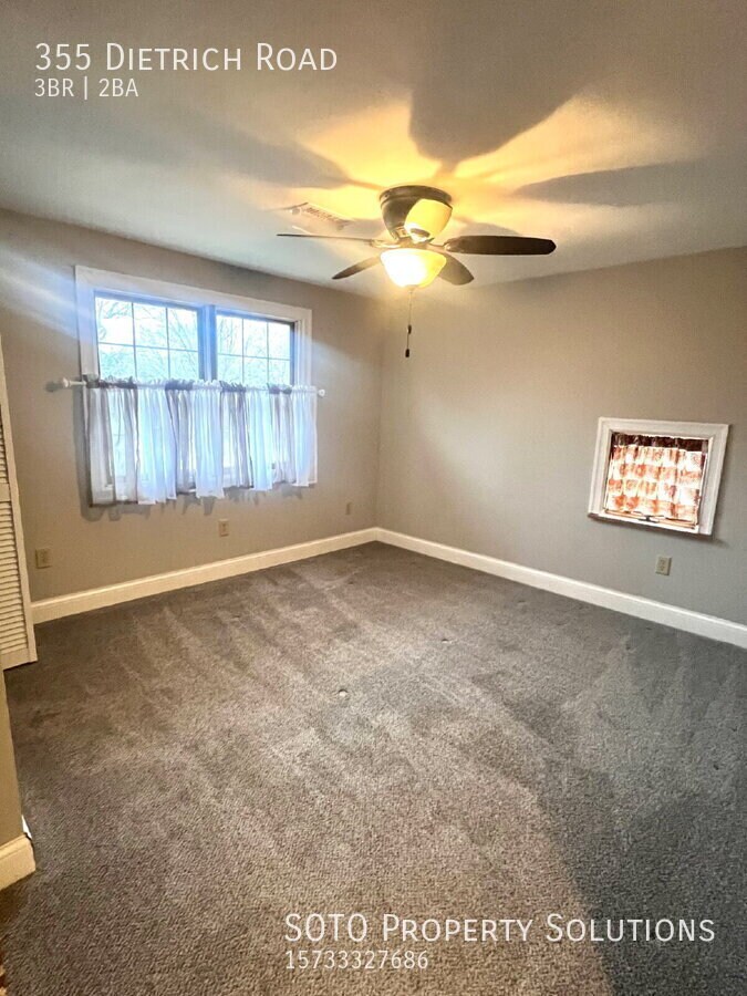 There is currently a 3 Bed 2 Bath Home for rent sq ft listed at 355 Dietrich Rd. It is Available Now.