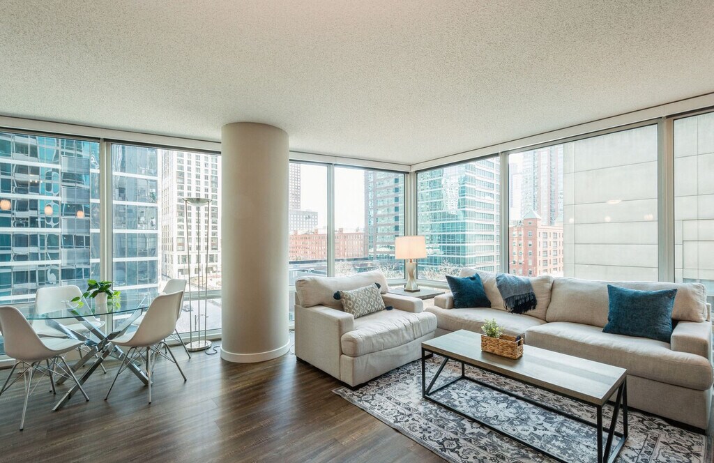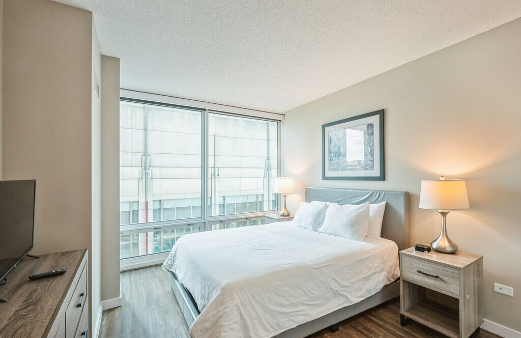 This stunning apartment in the vibrant Streeterville neighborhood offers a modern living experience with brand new furniture, hardwood floors throughout, and floor-to-ceiling windows. The fully equipped kitchen features stainless steel appliances and high-quality flatware, cookware, and dishes. Enjoy the convenience of an in-unit washer and dryer and secure high-speed wireless internet. Feel at home with bi-weekly housekeeping by the same housekeeper. Designed with modern elegance, this apartment boasts brand new furniture and a fully equipped kitchen with stainless steel appliances. The open layout and floor-to-ceiling windows create a bright and inviting atmosphere, perfect for relaxation or entertaining. Pets are welcome with an additional $500 one-time fee and parking is available upon request with a $450 car per month fee. Located in the vibrant Streeterville neighborhood just north of downtown, this apartment places you at the heart of Chicago's entertainment, culture, art, and style. You’ll be close to attractions like Navy Pier, Ohio Street Beach, and the scenic Lakefront Trail. The Museum of Contemporary Art and the 360 CHICAGO Observation Deck are also nearby. For shopping and dining, the Magnificent Mile is just a short stroll away, featuring upscale boutiques and a variety of local restaurants, while grocery options like Whole Foods, Trader Joe’s, and Target ensure everyday conveniences are at your fingertips. Enjoy exceptional 24/7 customer support to ensure a seamless and stress-free stay. Unit numbers are assigned 3 to 7 days before check-in. The interior layout and design may differ between units, though the style will remain consistent. [SI]