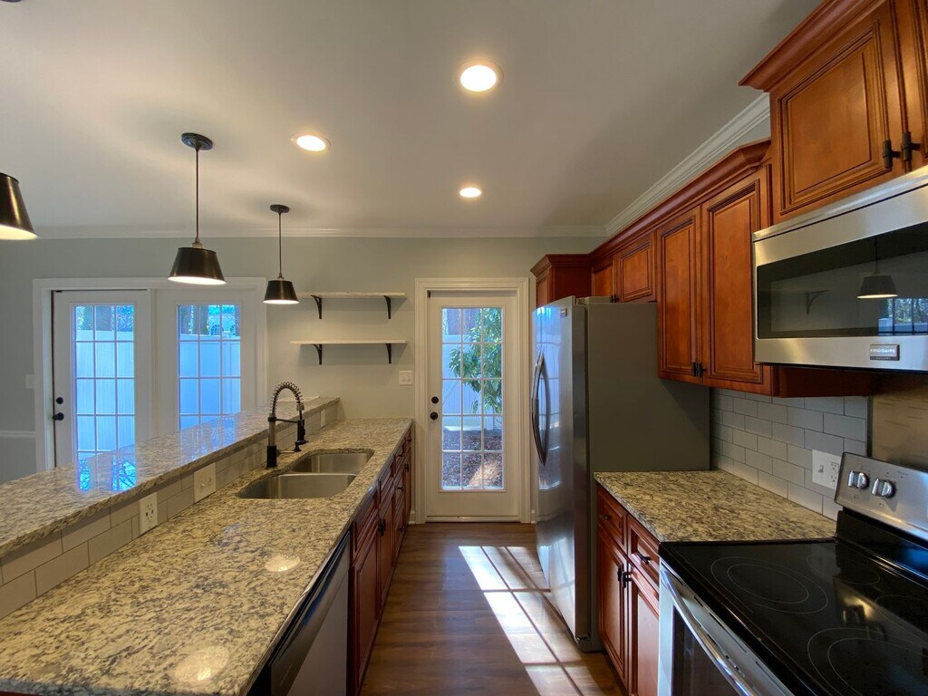 2 Bed 2.5 Bath $1,695 Monthly Rent $1,695 Security Deposit No smoking Pets conditional with pet screening and non-refundable pet fee Elementary: Whitaker Middle: Wiley High: Reynolds Description: Alluring 2 bed, 2.5 bath brick townhome flooded with natural lighting. The kitchen features stainless steel appliances, ample amount of cabinet space, generous counter space, and a unique pantry that adds character to the room. Large living room with plantation shutters. LVP throughout main living with carpet in bedrooms. Upstairs includes 2 cozy bedrooms, each with a full bath and walk in closet. Enclosed patio out back for all your entertaining needs. Home positioned minutes from shopping, hospitals, and restaurants. Convenient highway access. Heating: Heat Pump Heating Fuel: Electric Cooling: Central Water Heater: Electric Water: Public Sewer: Public Directions: Take US-421 S to Knollwood St. Take exit 236 from US-421 S. Turn left onto Knollwood St. Turn left onto Hanover Arms Ct. Turn left to stay on Hanover Arms Ct.