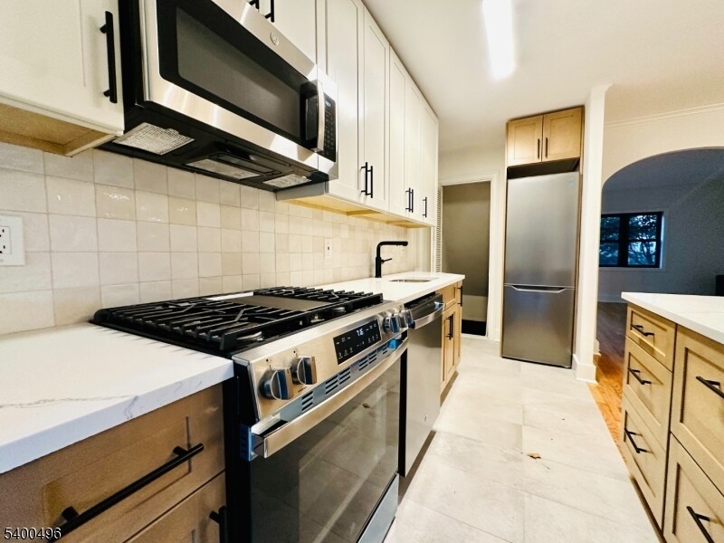 Welcome to 355 Valley Blvd, a beautifully renovated Tudor-style row house that blends classic character with modern design. This two-bedroom, one-bath home has been completely updated throughout with new appliances, fixtures, and finishes. The main level includes a welcoming living room, formal dining area, and a stylish new kitchen that opens to a comfortable family room overlooking the fenced backyard. Upstairs are two well-proportioned bedrooms and an updated full bath. The lower level offers laundry and storage space, and there is a detached one-car garage. Located in a desirable neighborhood close to shops, dining, and major commuter routes, with a NYC bus stop right on the corner. Move-in ready and thoughtfully renovated for today's lifestyle.