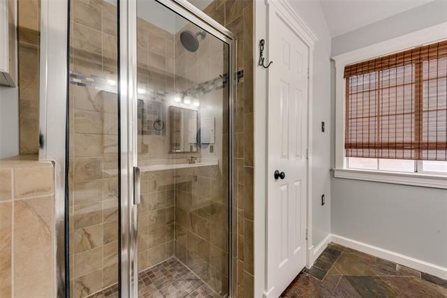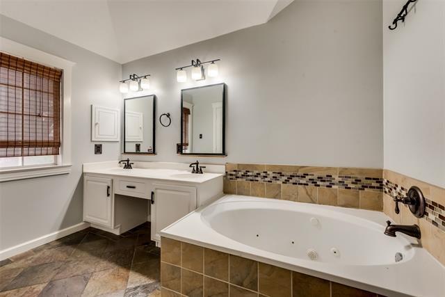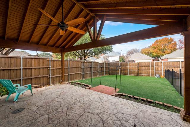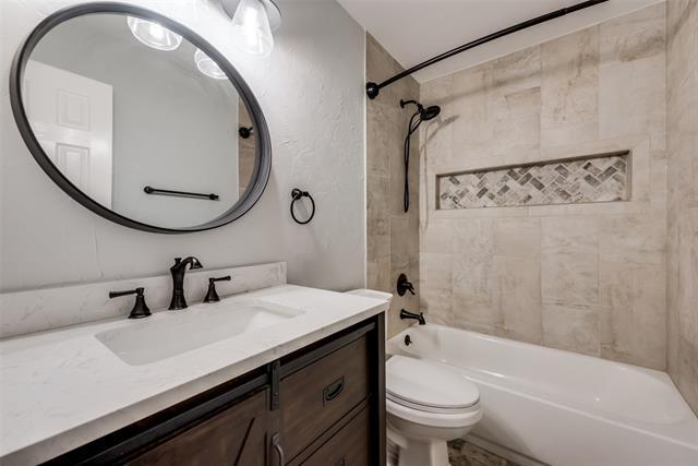 Charming single-story home in Dallas!! Open floor plan with 3 bedrooms with 2 baths. The master bedroom has 2 walk-in closets. The open kitchen has a skylight with stainless steel appliances and a gas cooktop & breakfast area. The entire house has wooden laminate floors and bathrooms with slate tiles. The master and guest bathrooms have dual sinks, quartz countertops, and a garden tub. The backyard has a covered patio with oversized stamped concrete, driveway has an electric gate.
