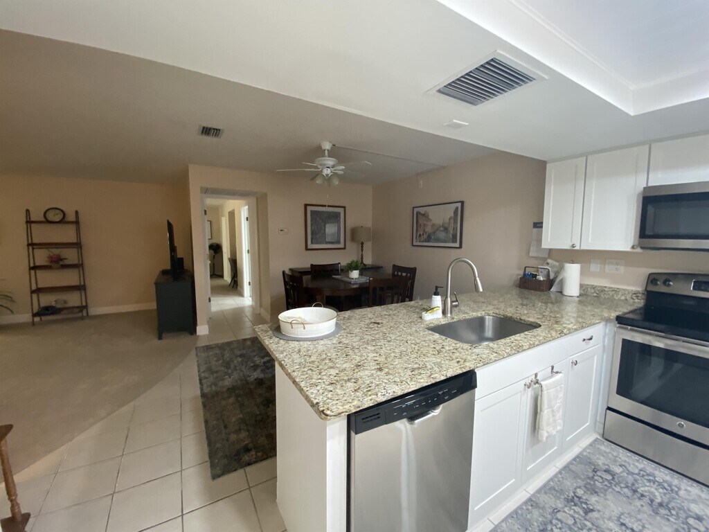 FULLY FURNISHED 2 BED/2 BATH/1 CAR CARPORT VILLA IN SEVEN SPRINGS GOLF & COUNTRY CLUB - AVAILABLE FOR THE 2026 SEASON!!! Beautifully furnished and updated. 2 bedroom, 2 full baths! Nearly 1,200 sq ft. Gorgeous kitchen with stainless appliances, granite countertops, tons of cabinets, a coffee/tea station and tons of light truly makes this the heart of the home. Stackable W/D in kitchen closet for convenience! The large living and dining area are well appointed and have all the things you'll want for a comfortable stay. The master bedroom is roomy even with the queen bed with a smart work station, walk in closet, oversized master bath with walk in shower! Use the sliding glass doors to go out to the enclosed Florida room. You can access the peaceful brick patio out back, overlooking the 15th hole tee box of the executive golf course! This property is located in the lovely, gated golf course community! Just minutes from great shopping and Trinity hospital. Less than one hour to Tampa and Busch Gardens or the famous beaches of Clearwater, Caladesi, Honeymoon Island and St. Petersburg. Rent includes water, sewer, trash, cable, internet and electric. It does NOT include the Social Membership. Security deposit of $500. Tenant application of $40/each and HOA application with $150 fee are required. There is a $150 cleaning fee. Landlord prefers non smokers and no pets.
