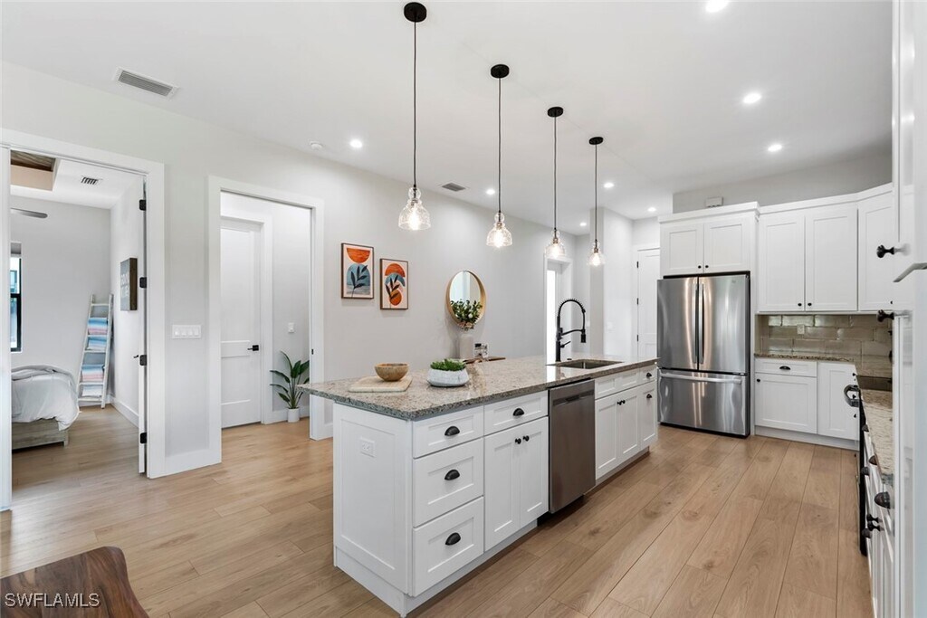 Furnished 3 Bedroom Pool Home Near Downtown Naples and Beaches! Beautifully furnished 3-bedroom,2-bath single-family home located at 3552 Hibiscus Ave in the desirable Naples Villas community. Built in 2022,this modern home features an open floor plan,stylish décor,and a bright living area that flows to the screened lanai and private pool. The kitchen offers stainless steel appliances,quartz countertops,and a large island perfect for entertaining. The primary suite includes a walk-in closet,dual vanities,and a walk-in shower. Enjoy impact-resistant windows and doors,a two-car garage,and a prime location just minutes from downtown Naples,shops,dining,and the beaches.