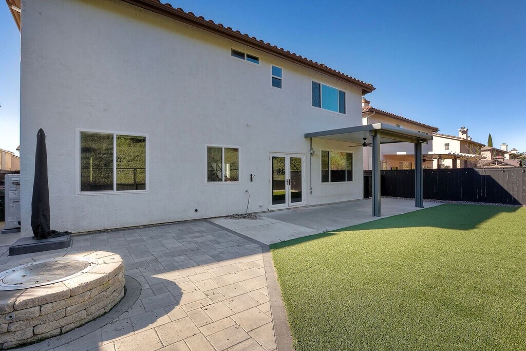 Welcome to Lake Rancho Viejo—an exceptional family community offering a true neighborhood feel with scenic walking trails, parks, and convenient freeway access. This spacious 2,782 sq. ft. home features 5 bedrooms and 3 full bathrooms, thoughtfully designed for comfort and functionality. One bedroom and a full bathroom with shower are located on the main level, making it ideal for a home office, den, or guest suite. The home has been painted in neutral tones with tasteful accent walls and showcases luxury vinyl plank flooring along with plantation wood shutters throughout. Energy-efficient upgrades include a whole-house fan, solar power with close to zero electrical costs, and a battery backup system, providing comfort, savings, and peace of mind. The inviting front entry opens to a light-filled living and dining room combination, perfect for entertaining. The kitchen and family room come together to create an expansive great room, complete with a cozy fireplace, ceiling fan, stainless steel appliances, abundant storage, and a walk-in pantry. Double doors lead to a serene, low-maintenance backyard with no neighbors behind, offering privacy and peaceful outdoor living. Downstairs also includes a storage closet and direct access to the two-car garage. Upstairs you’ll find four generously sized bedrooms, two full bathrooms, a versatile loft, and a dedicated laundry room with washer and dryer included. This home offers space, privacy, and a prime location—perfect for families enjoying everything Fallbrook and Lake Rancho Viejo has to offer.