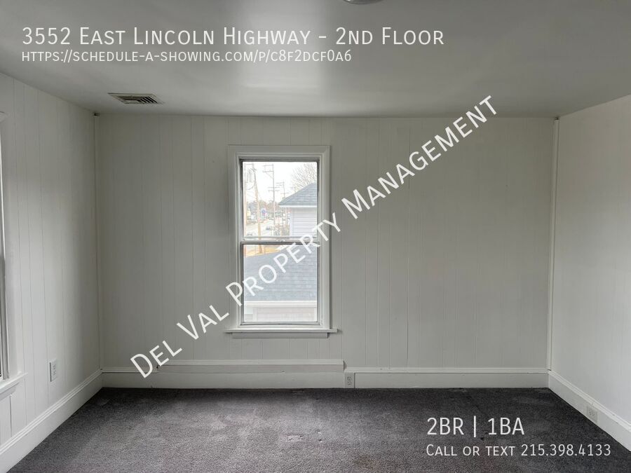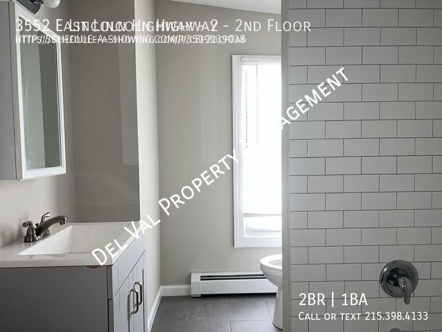 3552 E Lincoln Highway #2, Thorndale, PA 19372 $1,815/month + $85 Utility Fee Section 8 Approved, Small Pets Considered, Coatesville Area School District Discover modern comfort and everyday convenience in this beautifully updated 2-bedroom, 1-bath second-floor apartment in the heart of Chester County. With a private rear entrance, stylish finishes, and prime access to major routes, shopping, and dining, this home perfectly blends comfort and location. Inside the Apartment Enjoy a bright, open layout with recessed lighting, plush carpeted bedrooms, and laminate flooring in the main living areas for a clean, modern look. The spacious attic bonus area offers flexibility — perfect as a home office, den, or extra storage. Upgraded Eat-In Kitchen Cook and entertain in style with: Stainless steel appliances (including dishwasher & built-in microwave) Modern cabinetry for ample storage Large dining area ideal for gatherings Comfort & Convenience Central air and heat for year-round comfort Mudroom with washer & dryer for easy laundry days Off-street parking available Outdoor Enjoyment Small private patio at the entrance – great for morning coffee or evening relaxation Shared open green space behind the building Prime Location Situated minutes from Route 30 and public transit, this home offers quick access to: Shopping & dining options nearby Outdoor recreation at Dowlin Forge Park, Bondsville Mill Park, and Kerr Park Attractions like Longwood Gardens, Highland Orchards, and United Sports Complex Lease Terms One-year lease (longer terms available) $85/month utility fee covers water, sewer, and trash Tenant responsible for electric $65 non-refundable application fee per applicant Move-in costs: First month’s rent + one month's rent security deposit Resident Benefits Program Your lease includes access to Del Val’s Resident Benefits Program, featuring: Easy online rent payments Utility concierge services One-time late fee forgiveness And more! Schedule your tour today! Call or visit Del Val Realty & Property Management to apply. Property listed by: Del Val Realty & Property Management 49 E. Lancaster Avenue, Suite 300, Malvern, PA 19355 All information is deemed reliable but not guaranteed. Independent verification recommended. This modern apartment offers the perfect balance of style, comfort, and convenience—schedule your showing today before it’s gone!