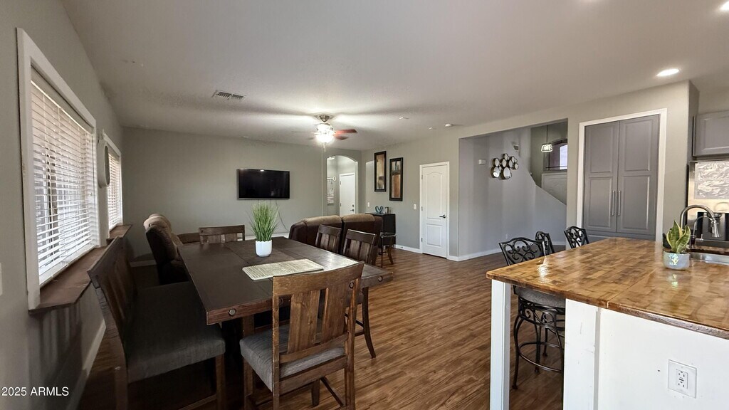 This 5-bedroom,3-bath Casa Grande home offers flexibility with a downstairs bedroom and full bath. The kitchen provides ample cabinetry and counter space,while the living areas are designed for gathering. The primary suite includes dual sinks and a walk-in closet. Outside,enjoy a private pool with covered patio and lawn space for pets. Two RV gates and a 3-car garage add convenience for parking and storage. Solar panels help manage energy costs while tenants cover the electric bill. Pool service is included.
