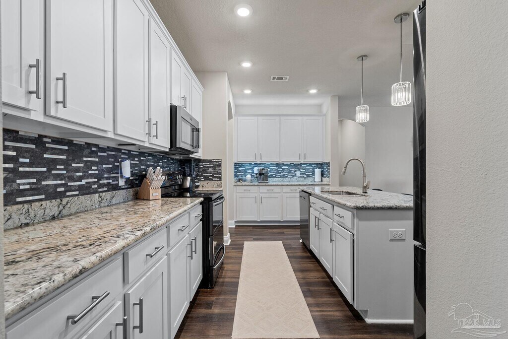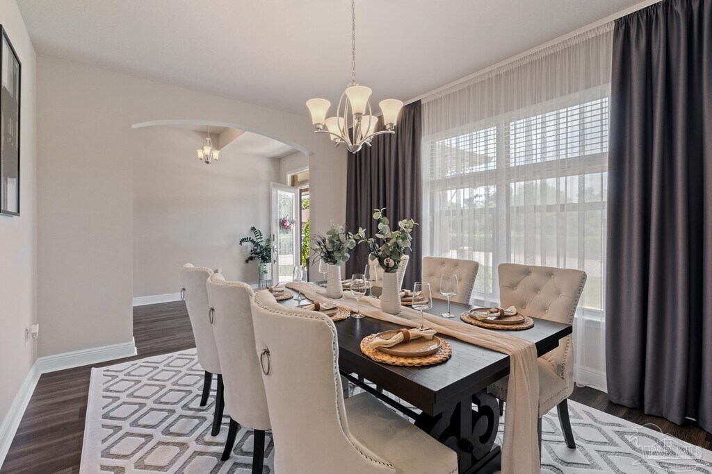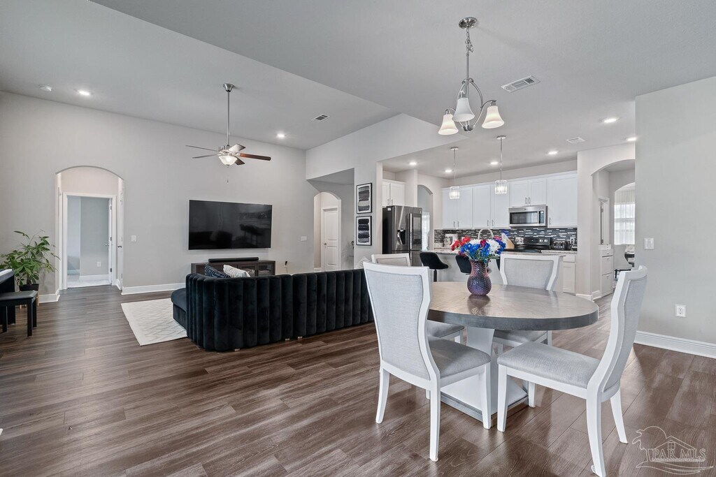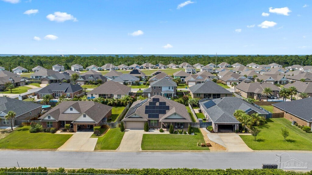 Welcome to 3552 Pelican Bay Circle,a truly exceptional 5-bedroom,3.5-bath Craftsman-style home located in the sought-after Pelican Bay Estates community in Gulf Breeze. This spacious single-story residence offers over 3,000 square feet of thoughtfully designed living space and sits on a beautifully landscaped 0.25-acre lot. From the moment you arrive,you’ll notice the care and quality that have gone into maintaining and enhancing this home. Recent upgrades include newly finished garage flooring,modern electric blinds,professionally installed gutters,a stylish kitchen backsplash,and a sleek touchscreen refrigerator. The kitchen flows seamlessly into the open-concept living and dining areas,making it ideal for entertaining or family gatherings. Every bedroom features custom wood-built closets,offering smart storage solutions and a touch of craftsmanship throughout. Tile and carpet flooring,high ceilings,ceiling fans,and an electric fireplace add warmth and comfort,while high-speed internet access keeps the home connected and ready for remote work or streaming. The spacious primary suite is a true retreat,offering over 400 square feet of space,a walk-in closet,and a luxurious en-suite bath. Step outside into your private backyard oasis,where a custom gunite pool is surrounded by lush landscaping and fresh sod,creating a perfect setting for relaxing or hosting friends and family. One of the standout features of this home is its energy efficiency: fully owned solar panels reduce the average electric bill to an astonishingly low $27 per month. The home also includes a two-car garage and is located in a quiet,family-friendly neighborhood just minutes from white sand beaches,top-rated schools,shopping,dining,and outdoor recreation. Ideal for those looking for a turnkey primary residence,second home,or income-producing rental property,this home offers the perfect balance of luxury,efficiency,and convenience. Can be offered partially furnished!