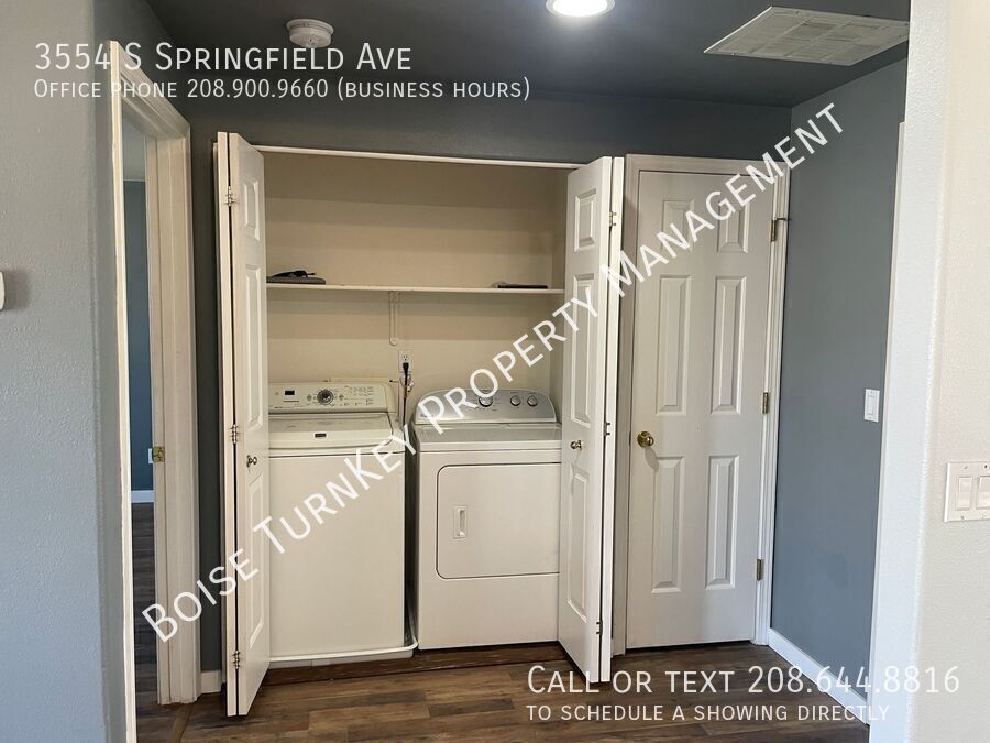 Your new home could be here on 3554 S Springland Ave, with its open concept living and dining and 3 well sized bedrooms, all on one level! Enjoy separation in the primary bedroom, which features an en-suite bathroom and ample closet space! All bedrooms feature ceiling fans for those hot summer days and nights, as well as a built in desk and shelving in the front bedroom, perfect for the gamer, student, or work-from home individual! Stainless steel appliances (just bring a microwave!) and an artful backsplash behind the stove complete the kitchen, which looks out on the huge private backyard. The neighborhood is situated just off of Meridian Road and has direct I-84 access, as well as close-by shopping and dining in Downtown Meridian. Easily navigable from the 2 car garage and driveway and with established landscaping, there isn't much this little home can't provide. Apply now if you think this home might be the one for you! Nitty Gritty Details: Available now with 12 month lease term, renewal options available. Pets may be considered with a favorable screening score on and an additional pet fee. Washer/dryer provided AS-IS. The units will not be repaired/replaced if they fail. Tenant pays all utilities - electricity, gas, water, sewer, & trash. Security deposit of $2300 is due 48 hours after application approval ($1,700 refundable, $600 held for administrative fees, cleaning, and rekeying). Lawn and basic yard maintenance will be provided. All adult tenants on the lease must undergo screening and meet qualification criteria; roommates must each qualify independently. Tenants will be required to secure a renter's insurance policy. Please note that we do not hold properties; you should be prepared to initiate a lease and commence rent payments within 10 days of application approval. Verify this listing on our official company website (we do not advertise on Craigslist) and request an in-person showing with a qualified agent today! None