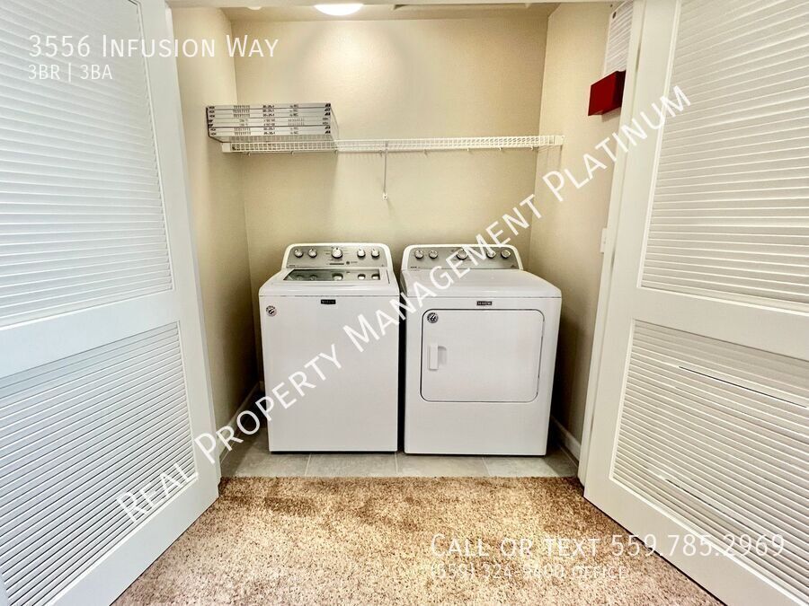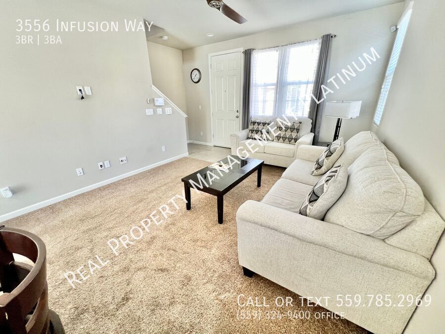 CLICK HERE to schedule a showing: 3 Bedroom | 2.5 Bathroom | 1212 Sq. Ft. | Built in 2015 Located in the Harlan Ranch Community. Two story home. Entry opens to the living room and kitchen. Kitchen has granite countertops, stainless appliances, breakfast bar and pantry. Appliances include gas stove, microwave, dishwasher and refrigerator. Half Bathroom downstairs. 2 full bathrooms upstairs. All bedrooms are upstairs. Main bedroom has two closets. Main bathroom has granite, single sink and shower. Upstairs bathroom has single vanity and tub/shower. Laundry is upstairs and Includes a Washer and Dryer with electric hook ups. Attached one car garage with extended storage space. Credit score above 650 REQUIRED. No pets. Non smoking. Enjoy the patio area and backyard lawn great for entertaining. Yard care provided. Some furnishings included. Tankless water heater. HOA included. Clovis unified school district. Enjoy HOA amenities, walking trails and community pool. Renter's insurance is required. Cross streets are De Wolf and HWY 168. Call to schedule a showing or to contact the office. DRE# 01901101. All information is deemed reliable but not guaranteed and is subject to change. No Pets Allowed Non Smoking Renter's Insurance Required