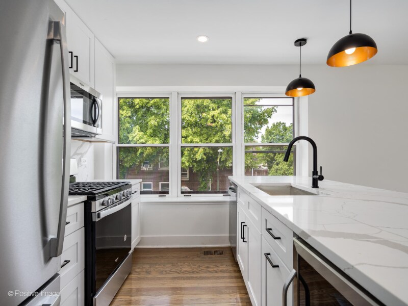 Property Id: 2409293 Available May 1 - Welcome home to this top floor, sun drenched, 2 bed/1 bath in an amazing corner building. This apartment features a gorgeous open concept kitchen with quartz countertops, stainless steel appliances including beverage fridge, and eat at peninsula. Large living space with ample area for dining table. Bathroom boasts stunning tiled flooring, double vanity, and oversized subway tiled shower with rain head shower. Apartment features beautiful hardwood flooring throughout, large bedrooms, in unit washer dryer, and central heat and air conditioning. Shared roof deck patio. A few blocks to the heart of Roscoe Village, half mile to Addison Brown line station and blocks from Addison and Western bus lines. Parking available for additional rent. Pets welcome with owner approval and additional pet rent. Broker owned interest. Listing broker is related to owner and a licensed Real Estate Broker in Illinois.