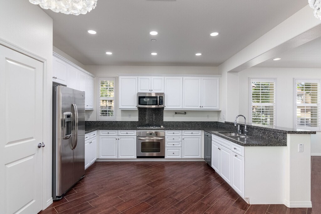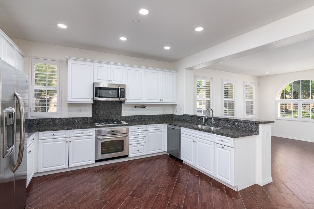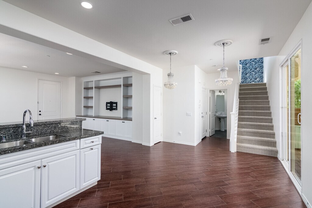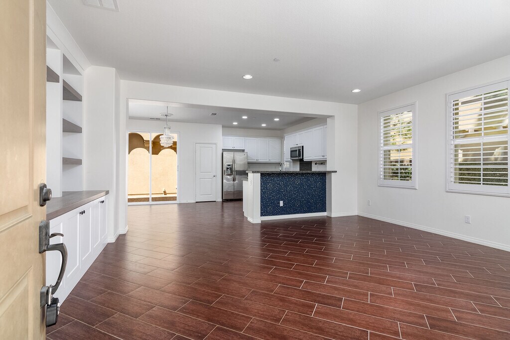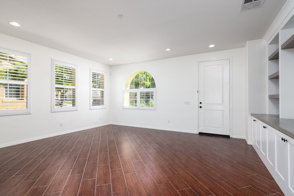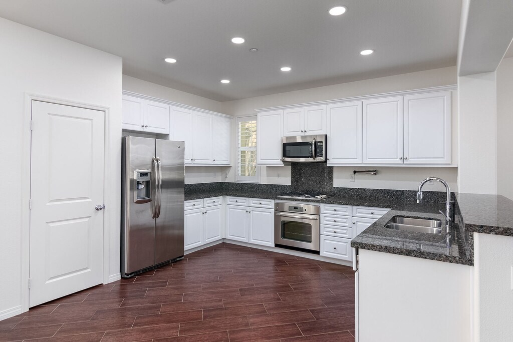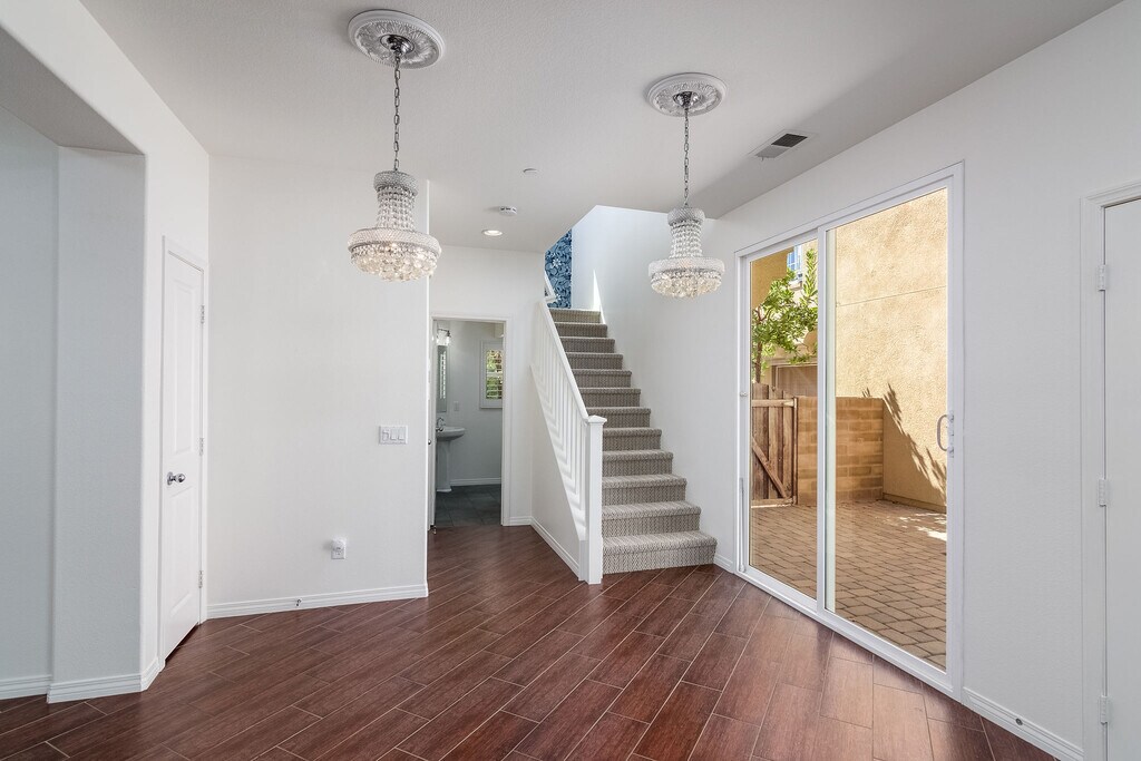 You will love this beautiful 2-story family home. With 3 bedrooms & 2 baths upstairs as well as a full-sized laundry room, washer & dryer included! Two-car garage plus extra storage. Entry level is large open floor plan of kitchen, living room & dining room. Great wall with shelving and housing large TV (bracket is mounted). Large half bath downstairs, as well. Sliding glass door to a sweet patio. Garage enters from the side. Hardwood floors throughout except stairs which have carpet. Lots of windows and light. Blinds throughout! Kitchen is fully loaded with refrigerator, dishwasher, microwave, stove/oven & garbage disposal. Pantry. Large and open to the family. Center island. Gorgeous crystal chandeliers in the dining area. Central heat and air conditioning. Ceiling fans throughout. Plenty of parking on the street, as well. Lovely and quiet community. Olympic size pool, jacuzzi, tennis courts, pickle ball courts, children's play ground, family events, etc. Landscaping is all handled by the HOA. You can dress up your private patio how you'd like. We welcome well-behaved dogs. Home is available to rent October 1st! $4,800/mo plus utilities. Security deposit dependent upon credit and references. You will love this beautiful 2-story family home. With 3 bedrooms & 2 baths upstairs as well as a full-sized laundry room, washer & dryer included! Two-car garage plus extra storage. Entry level is large open floor plan of kitchen, living room & dining room. Great wall with shelving and housing large TV (bracket is mounted). Large half bath downstairs, as well. Sliding glass door to a sweet patio. Garage enters from the side. Hardwood floors throughout except stairs which have carpet. Lots of windows and light. Blinds throughout! Kitchen is fully loaded with refrigerator, dishwasher, microwave, stove/oven & garbage disposal. Pantry. Large and open to the family. Center island. Gorgeous crystal chandeliers in the dining area. Central heat and air conditioning. Ceiling fans throughout. Plenty of parking on the street, as well. Lovely and quiet community. Olympic size pool, jacuzzi, tennis courts, pickle ball courts, children's play ground, family events, etc. Landscaping is all handled by the HOA. You can dress up your private patio how you'd like. We welcome well-behaved dogs. Home is available to rent October 1st. $4,800/mo plus utilities. Security deposit dependent upon credit and references.