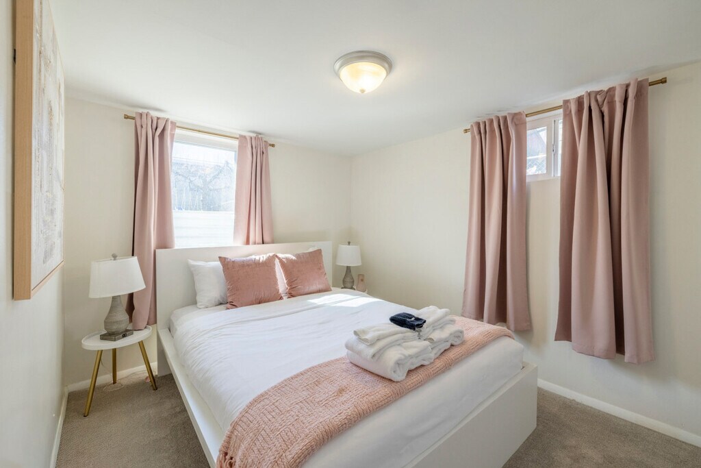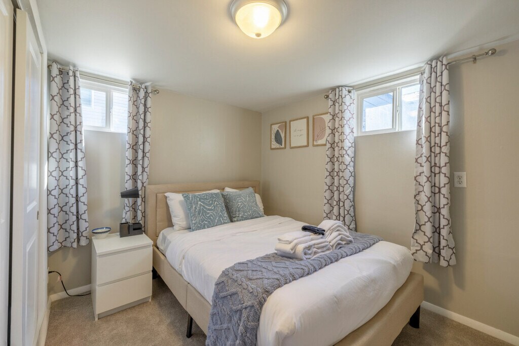 Welcome to your spacious 4-bedroom, 2-bathroom home in Salt Lake City, perfect for families or business travelers. This home offers a fully stocked kitchen, washer and dryer, and a private outdoor space ideal for dining. Located just a 5-minute walk from the UTA train stop, you have quick access to Sugarhouse shops, Downtown, and the airport. The home is also conveniently situated 10 minutes from the Delta Center and Gateway Center, 14 minutes from the University of Utah, and 15 minutes from SLC International Airport. Enjoy easy access to hiking and mountain biking trails, as well as six different ski resorts within 45 minutes. Feel at home in this charming and fully equipped home, featuring a cozy living room with a plush sectional sofa, a Smart TV, and large windows that fill the space with natural light. The fully stocked kitchen, complete with stainless steel appliances and a coffee maker, makes meal preparation a breeze. The dining table comfortably seats your group, with two additional stools available for larger gatherings. The home offers driveway parking for your convenience. For those traveling with pets, a fee of $10 per pet, per day applies. Guests are required to pick up after their pets, with a $10 charge per exterior location if not cleaned. Unauthorized pets incur a $250 fee. Service animals are permitted at no extra cost. Located in a family-friendly neighborhood, this home offers proximity to various attractions and amenities. With a 5-minute walk to the UTA train stop, you can easily explore Sugarhouse shops, Downtown, and the airport. The Delta Center and Gateway Center are just 10 minutes away, while the University of Utah is 14 minutes away. Enjoy the convenience of being 15 minutes from SLC International Airport and within 45 minutes of six ski resorts, as well as hiking and mountain biking trails in the valley, Corner Canyon, and Park City. Smoking or vaping is not allowed on the premises, with a $200 per day fee for violations. Quiet hours are from 10:00 PM until sunrise. Self check-in is available via a smart lock, ensuring a seamless arrival experience. The home is perfect for remote work, featuring a dedicated workspace with two desks, two monitors, and docking stations. A reading nook and natural light enhance the office space, making it an ideal environment for productivity. A laptop computer is not included. [SI]