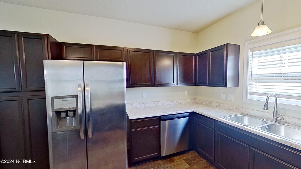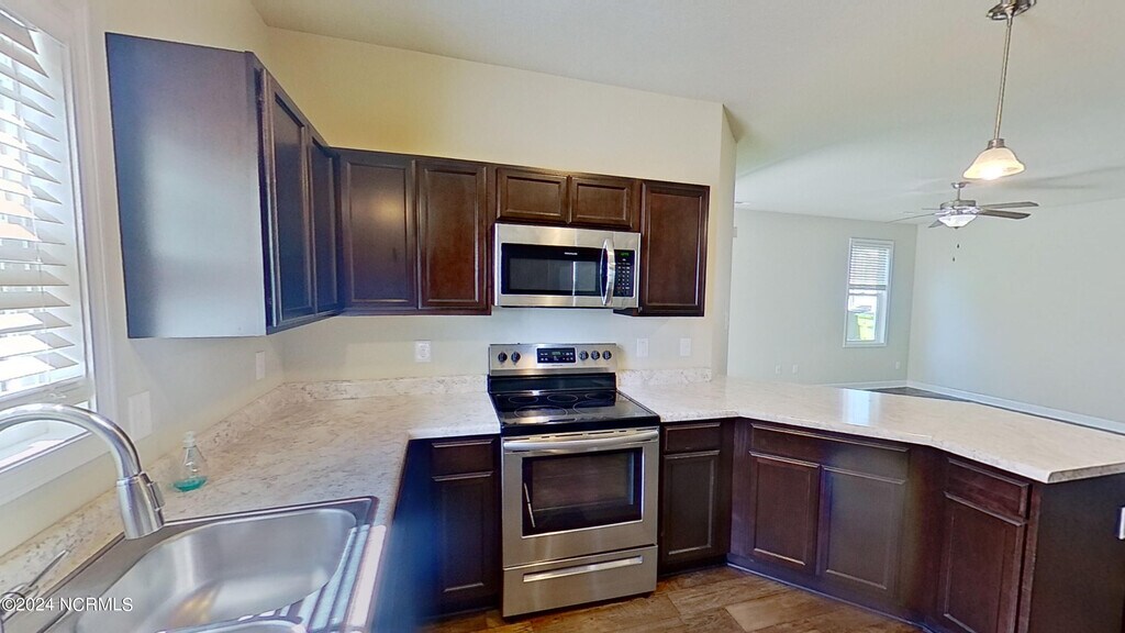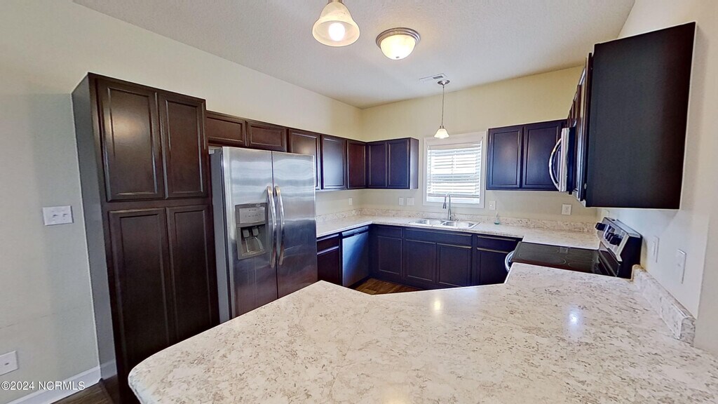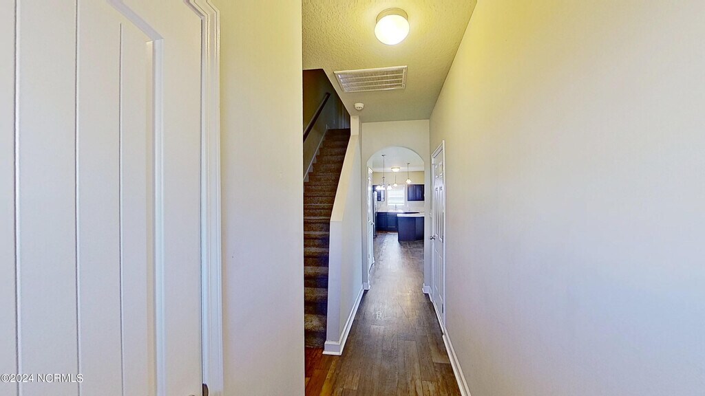 Beautiful two story 3BD/2.5 BA townhome is located in the Landing at Folkstone in Holly Ridge. The main level features an open floorplan for easy living and entertaining. The living room has access to the covered patio which overlooks the private back yard area. The kitchen offers beautiful wood cabinets, a double sink with window above, lots of counter space for cooking, and a breakfast bar. The stainless-steel refrigerator, dishwasher, built-in microwave and glass cooktop range are included. A half bath and attached oversized one car garage completes the main level. The upper level includes a master suite with an expansive, walk-in closet and private bath with double sink vanity and step-in shower. Two guest bedrooms, an additional full bath and laundry closet complete with washer and dryer are also on the upper level. Close to area beaches of Topsail, shopping in Surf City and Sneads Ferry, and a short drive to bases in Jacksonville. We are an Equal Housing Opportunity Management Company and abide by the term of the Federal Fair Housing Act. No Smoking, e-cigarettes or vaping. Pets allowed with prior approval and required pet fees. Aggressive breed list may apply. Contact listing agent prior to submitting application. All applicants over 18 years of age are subject to a background check, including criminal, credit, employment verification, and past tenancy.
