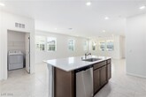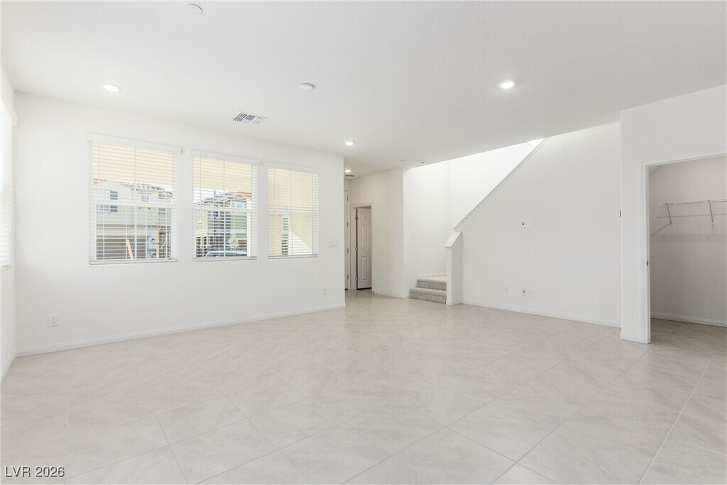 This brand new 3-bedroom, 2.5-bathroom townhome is ready for move-in. The home spans 1809 square feet and features upgraded cabinets and quartz countertops. The first floor boasts airy 9-ft. ceilings and an open floor plan that is perfect for entertaining guests. The kitchen is equipped with stainless steel appliances and a spacious island that provides ample space for meal preparation. The living area is adorned with tile flooring that adds a touch of elegance to the space. The second-floor features three bedrooms, including a super primary bedroom with an en-suite bathroom. The home also includes a tankless water heater and water softener for added convenience. Located in the Inspirada neighborhood of Henderson, the community is conveniently located near shopping centers, restaurants, and parks.