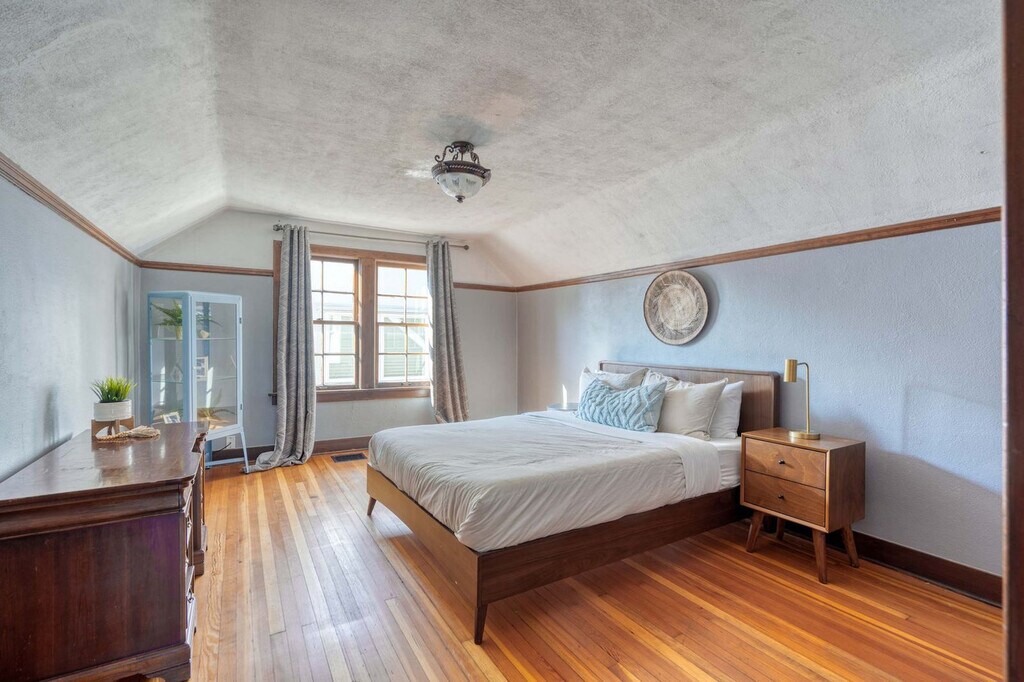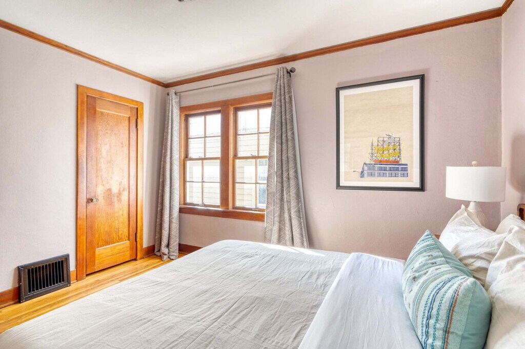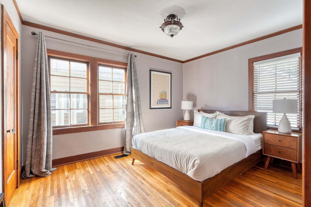 Feel at home in this charming, cozy, and spacious home located in the heart of the Hollywood District, boasting a WalkScore® of 93. This original Portland home has been recently renovated, giving you a unique modern feel in a historic neighborhood. Tastefully furnished in true Portland fashion, the living room is cozy and relaxed, perfect for cuddling up and watching movies on the 50" LED flat-screen TV with cable and AppleTV equipped with Netflix access. The fully equipped kitchen features new appliances, and there's a big table in the spacious dining room to easily host your crew, with a New Seasons less than two blocks away. After a day of walking, shopping, and eating, you'll love coming home to the super comfy queen-size beds in each of the bedrooms. A central air conditioner and a window AC unit upstairs ensure a relaxing temperature. Pets are welcome with a fee of $99 per dog, with a maximum of 2. Get an authentic taste of Portlandia with local restaurants, markets, and shops all within walking distance. Blazing fast Wi-Fi is great for streaming or for those who need to get some work done. Check-out is by 11AM with self check-in using a keypad. Quiet hours are from 10pm-8am, and smoking tobacco or marijuana inside will result in a $150 penalty. Events and/or parties are strictly prohibited and will result in fines per host discretion and immediate eviction. Any unauthorized guest is subject to a $150 per guest penalty. Undeclared pets are subject to a $200 per stay penalty. Any unauthorized early check-in or late check-out is subject to a $75 fee. Lost, missing, or otherwise unreturned keys are subject to a $100 fee. Missing remotes will incur a $50 fee. Violation of house rules may result in eviction and/or monetary fine. Please remove your shoes when indoors. Please lock all doors and windows when not at home. Please do not have any mail or packages delivered to the home. Spring through Fall is the sugar ant season throughout the Pacific Northwest, so please store items accordingly and clean thoroughly after cooking and eating, and dispose of food waste promptly. Items left behind can be shipped to you at the cost of shipping + a $10 processing fee. Excess cleaning may result in an additional cleaning fee. Unauthorized use of extra beds or bedrooms will result in a fine of $75. [SI]