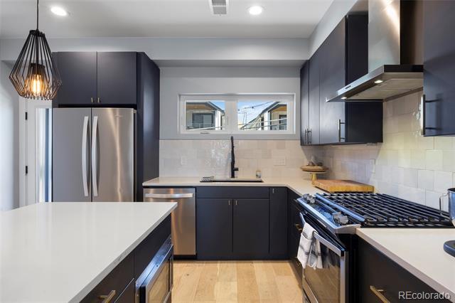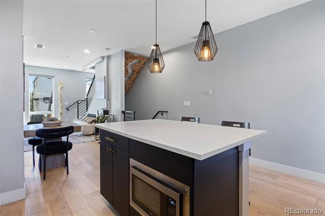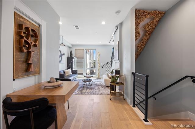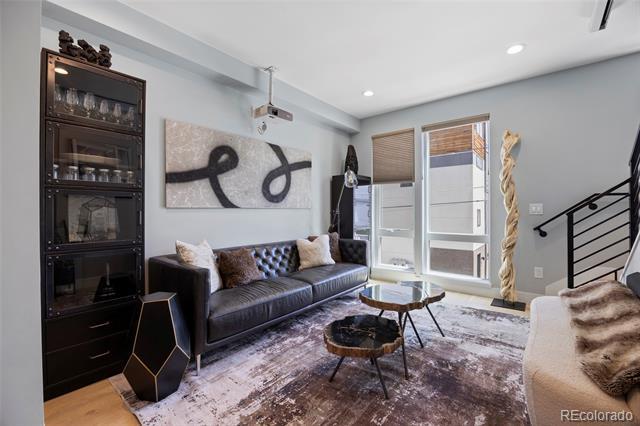 Perfectly positioned near I-25, West Highland, downtown, and Sloan’s Lake, this fully furnished modern townhome blends refined design with exceptional urban access, featuring thoughtfully curated interiors with a high-end leather sofa and modern accessories for a polished, move-in-ready living experience. Entry from the spacious one-car garage includes a utility room with washer/dryer and a purposeful mudroom for storage and everyday ease. The second level features a well-appointed kitchen with gas range, refrigerator, microwave, island seating for 2, and a dedicated dining/living area, complemented by a built-in state-of-the-art video projection system for elevated entertainment. Just off the kitchen, a second private balcony extends the living space outdoors. Perfect for morning coffee or brunch. The third level offers two spacious bedrooms and a guest bath, along with a primary suite that includes a second video projection system, a walk-in closet, and an en-suite double vanity bath. A spiral staircase leads to a rooftop deck complete with pergola, outdoor seating, grill/smoker, and sweeping sunset views—an ideal extension of the living space for relaxing or entertaining. Positioned just minutes from downtown, this West Denver location delivers a rare balance of city convenience and outdoor living, anchored by Sloan’s Lake. One of Denver’s most sought-after parks, it offers immediate access to miles of scenic trails, paddleboarding and water recreation, and unobstructed mountain and skyline views. The lake’s edge is lined with a vibrant mix of restaurants, cafés, and neighborhood shops, creating a highly walkable and active lifestyle setting. The surrounding neighborhood continues to evolve, blending classic Denver architecture with thoughtful modern development. A growing collection of local dining, boutique retail, and community-driven spaces adds to the area’s energy, making it one of the city’s most dynamic and desirable Westside locations. Townhouse MLS# 4176311