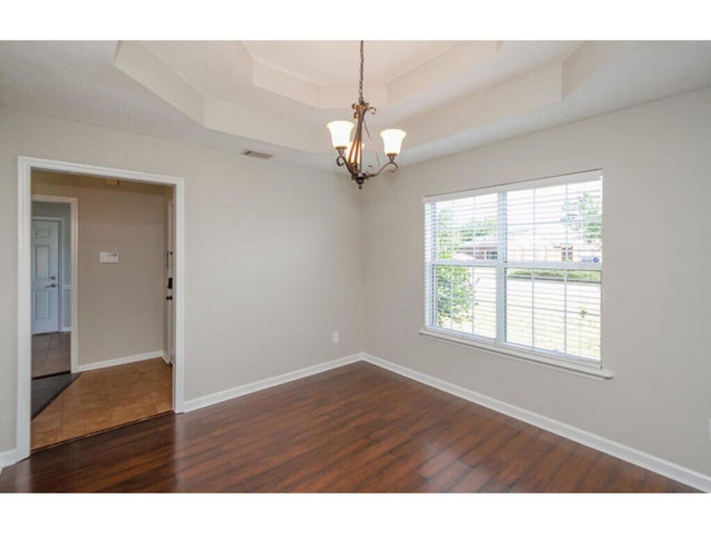 Available July 1 , 2026. Rent is $1,700. NO PETS, NO ROOMMATES, NO SMOKING. Minimum credit score 650 required. Security deposit equal to 1 months rent. Brick one level w/ 4 bedrooms, 2 full bath. Large private fenced lot. Hard surface flooring in living area & 2 bedrooms. Carpet in other 2 bedrooms. Master w/ double tray ceiling, garden tub, separate shower & double sinks. Great room has vaulted ceiling & gas fireplace w/ door that leads to outside patio. Tile in kitchen & bathrooms, kitchen w/ stainless appliances, breakfast bar, dining area w/ palladium window, newer countertops & backsplash. Additional flex room that could be used as a formal dining, office, playroom or second family room. 10x 9 outside storage building. Single car garage w/ parking pad. Required landscaping contract is $140.00 per month which covers all tenant obligations for the yard all year long!