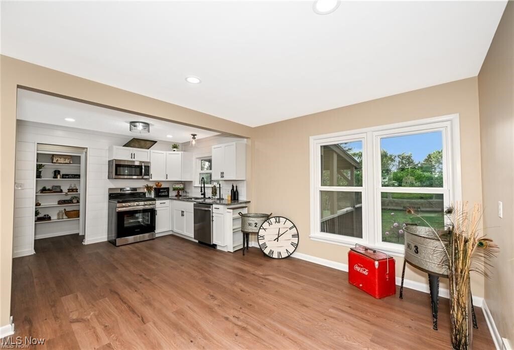 Welcome to this charming 3-bedroom,1.5-bath ranch home on Barberton's desirable east side,offering the perfect blend of modern updates and timeless appeal. This beautifully maintained property features a recently updated roof,kitchen,flooring,windows,gutters,paint,garage doors,and much more,ensuring peace of mind. Inside,you'll find a bright and inviting living space with a thoughtfully redesigned kitchen and stylish finishes. The lower level adds extra functionality with a convenient shower,providing added versatility. Situated on a spacious double lot,the outdoor area is perfect for entertaining,gardening,or simply relaxing in your own private retreat. A two-car garage with new doors and a prime location in a peaceful neighborhood close to parks,schools,and shopping complete this move-inready home. Don’t miss the opportunity to make this gem your own—schedule a showing today!