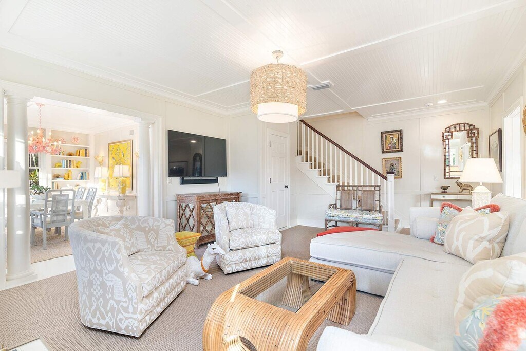 This beautifully updated 1920s home on Seabreeze Avenue offers 5 bedrooms and 4.5 bathrooms across a spacious main house and private guest house. The main residence features 3 bedrooms, 2.5 baths, a formal dining room, sunroom, and a chef's kitchen with premium appliances. The detached guest house includes 2 bedrooms, 2 baths, a full kitchen, and living area—perfect for guests or extended stays. Enjoy lush tropical landscaping by Fernando Wong, a serene courtyard with fountain, and a covered outdoor lounge ideal for entertaining. Located just steps from the beach, Lake Trail, shopping, and dining. Rented until May 2, 2026. Rental Terms: Winter Season: $50,000 Per Month