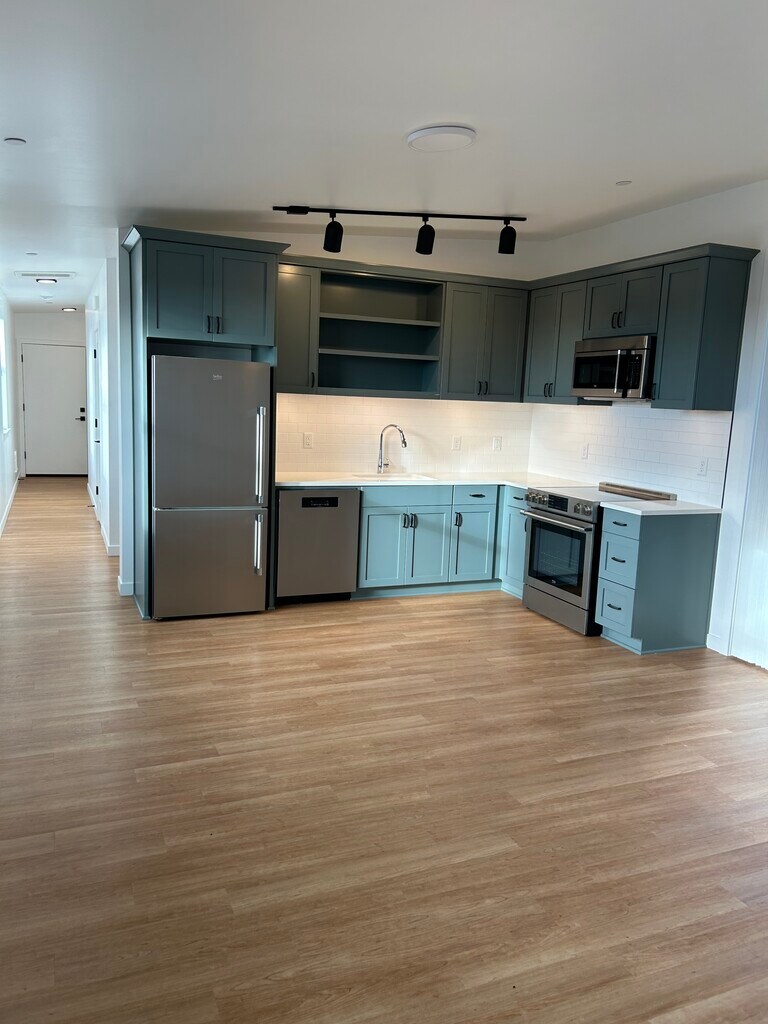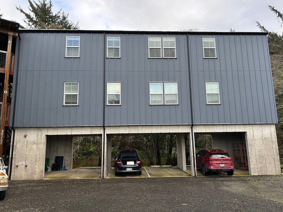 Light and bright modern top floor apartment in Pacific City. Split two-bedroom apartment with central living room/kitchen. One bath with washer & dryer. Full kitchen featuring stainless steel appliances: refrigerator, range, dishwasher and microwave. Blinds/window coverings included. Onsite storage unit (approx. 6' x 9') available for additional monthly fee.