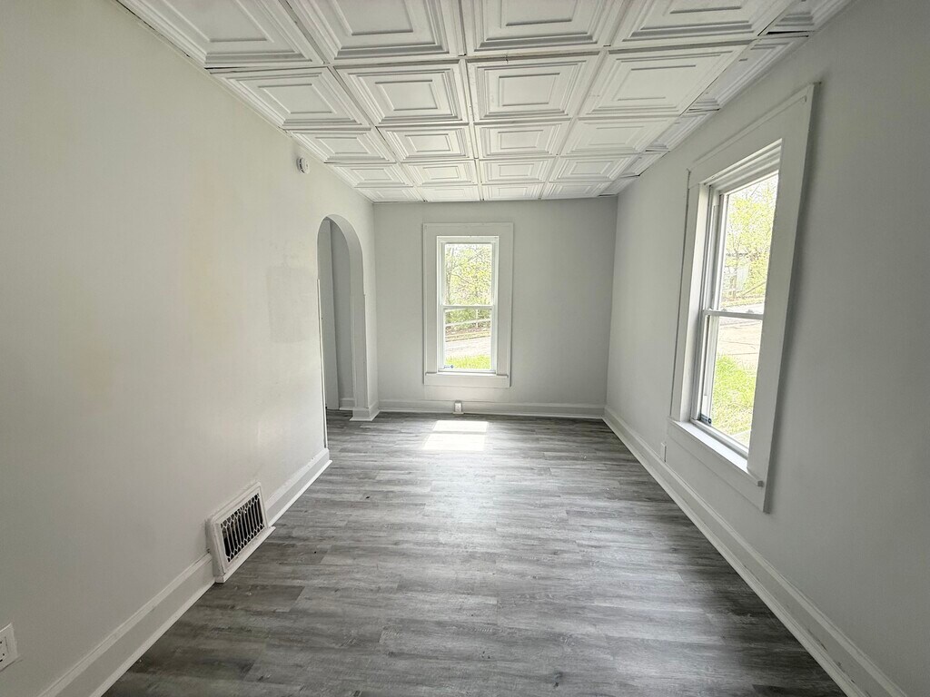 This spacious house in Sharon, PA features two large bedrooms and a large bathroom. The eat-in kitchen is perfect for family meals, complemented by a formal dining room for entertaining guests. Upon entering, you'll find a generous living area that provides plenty of space for relaxation. The backyard is sizable, ideal for outdoor activities, and includes off-street parking for convenience. Additionally, there are laundry hookups available for added ease.