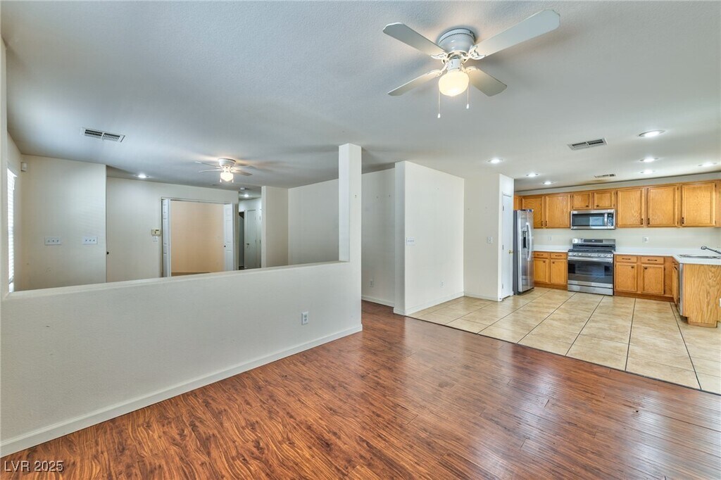 Charming single-story home located in the desirable heart of Silverado Ranch! This beautifully maintained property features a freshly painted interior with upgraded baseboards in the main living areas, giving it a clean and modern feel. Enjoy 2 blinds throughout for privacy and style. The spacious primary bedroom offers a walk-in closet, ceiling fan, and an ensuite bathroom with both a tub and shower. The open-concept kitchen boasts ample counter space, plenty of cabinets, a double sink, garbage disposal, dishwasher, and refrigerator—perfect for everyday living and entertaining. Flooring includes warm hardwood in the main areas, durable tile in the kitchen and bathrooms, and plush carpet in the bedrooms. A sliding glass door off the kitchen leads to a covered patio and a fully paved backyard—ideal for outdoor dining or relaxing evenings. Situated in a quiet, friendly neighborhood just minutes from shopping, restaurants, and more. This one won’t last—schedule a showing today!"