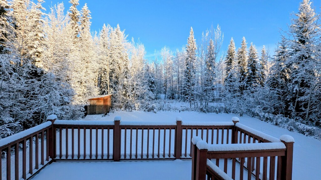 Must see to fully appreciate - this gorgeous home in North Pole offers more than 2,500 square feet of living space with 4 bedrooms, 2 bathrooms, and an attached heated 2-car garage, all situated on a private 1.18-acre lot. The property combines a quiet wooded setting with updated interior finishes and generous room to spread out, creating a comfortable and stylish rental opportunity in a desirable residential area. The upper level features three bedrooms, a bathroom, a spacious open layout with vaulted ceilings, large wall of windows, and excellent natural light. The kitchen includes warm wood cabinetry, ample counter space, and a center island with seating, with French doors leading to the elevated deck overlooking the backyard. The lower level includes additional living space, primary bedroom, second full bathroom, laundry room (washer and dryer hook-ups), and the attached garage which provides substantial enclosed parking and storage. Multiple living areas throughout the home offer flexibility for a variety of needs, and the bedrooms and bathrooms are finished in a clean, neutral style that allows easy personalization. The location offers a balance of privacy and convenience, with an approximately 15–20 minute commute to both Eielson Air Force Base and Fort Wainwright, and quick access to schools, shopping, dining, and essential services in North Pole and Fairbanks. Chena Lake Recreation Area and other outdoor amenities are also close by. Offered at $2,900 per month + utilities. Tenants are responsible for electric, heating fuel, snow removal, lawn care, and any optional cable or internet services. Water and sewer are included in the monthly rent due to the private well and septic system. Pets are allowed upon approval. Professionally offered and managed by Fairbanks Rental Properties, a DBA of Hedgecock Group Real Estate LLC.