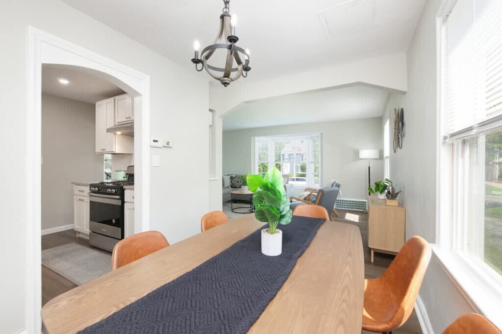 The advertised rate of $3,452/month is the lowest available price, based on a 1 month(s) stay with a move-in date of April 4, 2026. Rates vary depending on the duration of stay, season, and other parameters. For exact pricing and additional pricing components, please visit our website and enter your desired move-in and move-out dates. The rate is applicable when billed upfront; it can be higher if billed in multiple payments. Feel at home in this delightful park-side retreat in University Heights, perfect for families and friends. This spacious home accommodates up to 6 guests across 3 bedrooms and 1.5 baths, featuring a park view and a nearby playground. The well-equipped kitchen features a refrigerator, freezer, microwave, and a whirlpool stainless steel electric stove. Cooking basics like pots, pans, oil, salt, and pepper are available, along with dishes, chopsticks, cups, and wine glasses. A Keurig coffee maker with complimentary coffee makes mornings easy, and a dining table sets the stage for shared meals. Unwind in the common areas with a TV, books, and reading material, or connect to fast Wi-Fi verified at 355 Mbps for streaming 4K videos and video calls. A Nintendo system with over 620 games adds entertainment for all ages. Central air conditioning and heating ensure comfort throughout the seasons, complemented by an indoor electric fireplace for added warmth. A free washer and dryer make laundry simple during longer stays. The property is equipped with a smoke alarm, carbon monoxide alarm, fire extinguisher, and first aid kit. Check-in is easy with a smart lock and private entrance. Guests traveling with little ones can request a crib, pack ’n play, or baby bath for a fee. This pet-friendly home allows a maximum of two dogs for a flat fee of $125 per stay. Requests to bring a third or fourth dog are subject to approval and will incur an additional $100 fee. Enjoy a private backyard with an outdoor dining area, perfect for al fresco meals, though it is not fully fenced. The nearby playground is equipped with play structures for children, providing another place to gather and play. This home offers a comfortable base whether you’re exploring Cleveland just 20 minutes away, staying connected with work, or simply enjoying time together. Keep noise to a minimum outside between 10pm and 8am, as there is a $500 fine for excessive noise levels. A maximum of 2 dogs are allowed for a flat fee of $125 per stay, but no cats are allowed. Undisclosed pets will result in a $150 fee. No indoor smoking is permitted, and there will be a minimum $500 charge for extra cleaning. Smoking outside is permitted. No underage consumption or drugs. No parties or large gatherings are permitted. You will be charged $150 for late checkout without prior notice. Renters must be 21 years or older to book and stay. Weapons of any kind are strictly prohibited on the property. Please remove your shoes when entering the house. Includes a dedicated workspace that supports remote needs. [SI]