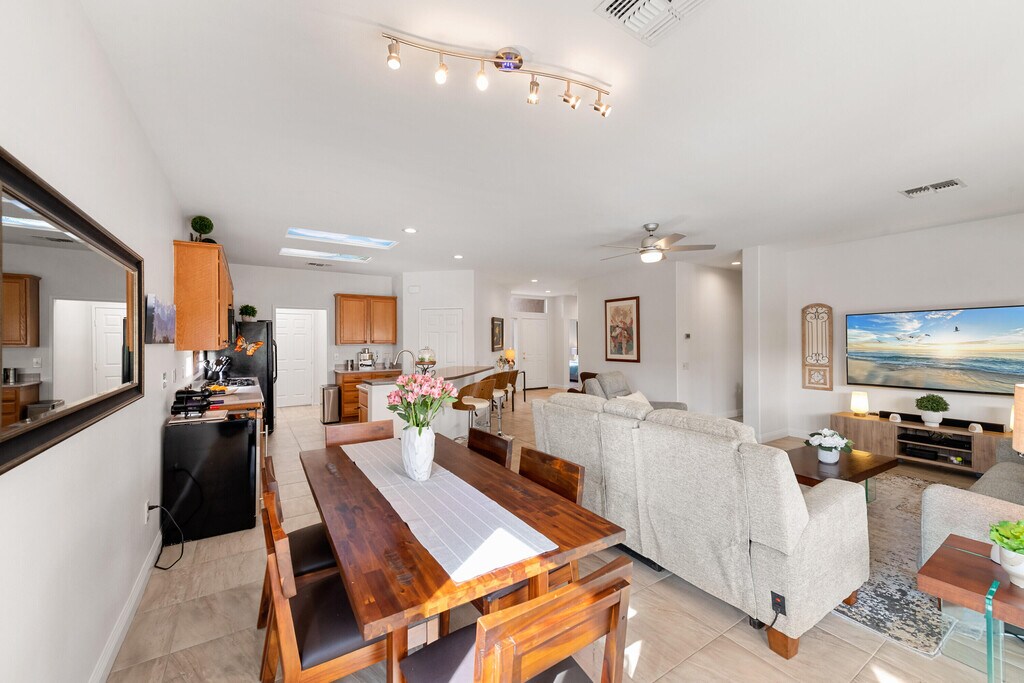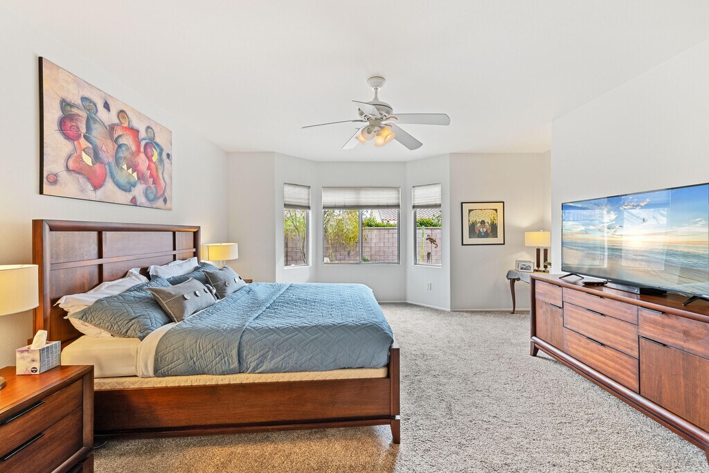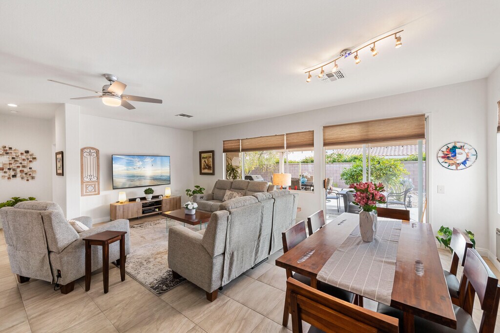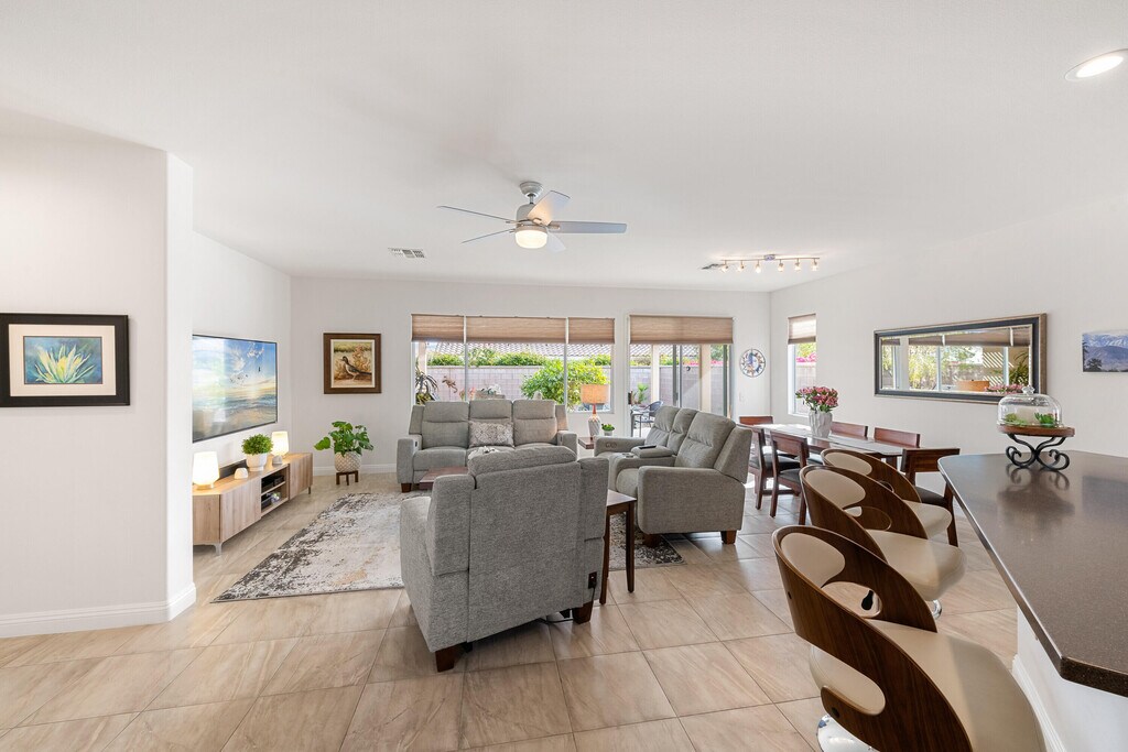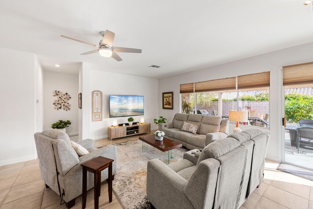 Immaculate Turnkey Lease available March 15,2026 thru OCT 31,2026. 55+ Sun City Palm Desert ''St Maartin'' Great Room floor plan. LEASED NOV 1,2025 thru MARCH 31,2026. Enjoy the Sun City lifestyle and amenities for 4 to 7 months. Beautifully furnished and fully equipped with all the comforts & conveniences. Great Room has leather & reclining sofas Lg TV & DVR. Master & Guest bedrooms both have king beds Lg TV's & DVD's. $100 monthly cap on Electric. $50 monthly cap on Gas. MLS # 219142756