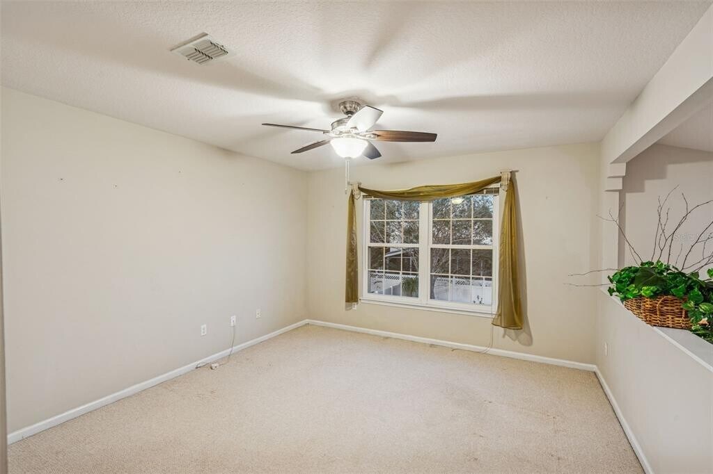 Step into comfort and style at this wonderful 3-bedroom,2.5-bathroom home nestled in the gated resort-style community of Ventura Country Club. This approximately 1,949 square foot residence strikes an excellent balance between comfort and leisure. Walk inside to a bright,open floor plan that flows effortlessly between the living,dining,and kitchen spaces. The living room boasts soaring ceilings,a wood-burning fireplace,and large windows that flood the space with natural light. The well-appointed kitchen features a breakfast nook,pantry storage,and tile flooring,making it ideal for easy maintenance. Just off the kitchen,you’ll find a spacious Florida room perfect for morning coffee,reading,or entertaining friends and family. The first-floor primary suite offers convenience and privacy,complete with a walk-in closet,ceiling fan,and a private ensuite bathroom with dual sinks and a large vanity. Upstairs,two additional bedrooms share a full bath and a loft area that can be used as a home office,playroom,or media space. Throughout the home,thoughtful upgrades and well-maintained finishes create a warm,welcoming environment that feels both functional and luxurious. Enjoy Florida’s sunshine in your private screened-in lanai,an inviting space perfect for evening dinners or simply unwinding after a day on the golf course. The backyard offers privacy and lush green surroundings,with low-maintenance landscaping and space for small outdoor activities or a garden setup. The two-car garage provides ample storage,and the quiet cul-de-sac location ensures peace and minimal traffic. This property is a short drive from the Orlando International Airport,less than a 15-minute drive. MLS# O6359599