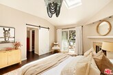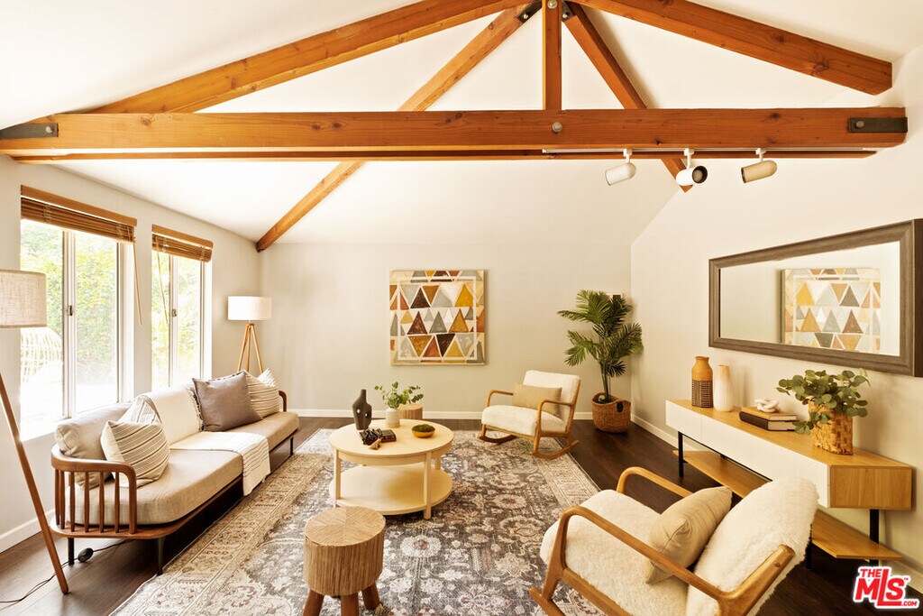 A garden hideaway in Mandeville. This sophisticated California Ranch home offers over 2,100 sq.ft. of well-designed living space on a lush 14,000+ sq.ft. lot. Walled and gated for privacy, the front yard opens to a charming porch and a warm welcoming interior that blends comfort, versatility, and timeless charm - set against a backdrop of vibrant landscaping and canyon greenery. A formal entry leads into vaulted living and dining rooms with dark refinished oak floors, a fireplace, and walls of glass that open to the backyard. Skylights throughout the home fill the space with natural light, and the living room, sunroom, and primary suite all connect seamlessly to the rear yard, where grassy areas and a flagstone patio surround a freeform pool framed by citrus trees and lush plantings. The kitchen is bright and functional, featuring stainless steel appliances and room for a breakfast table with views of the front garden - and one of Brentwood's only vineyards just across the street. Two bathrooms have been tastefully updated, and a third has been completely remodeled. A separate laundry room adds ease to daily living. The oversized den - with vaulted ceilings and matching wood floors - is ideal for a gym, studio, media room, or flexible second living area. In the bedroom wing, two guest rooms share a Jack and Jill bath, while the spacious primary suite includes vaulted ceilings, a fireplace, walk-in closet, and en-suite bath. Additional features include central HVAC, dual-pane windows, recessed lighting, and a two-car garage with direct entry. Lush, light-filled, and full of soul - this is Mandeville living at its best. Minimum of a 1-Year Lease. Tenant to Pay ALL Utilities. MLS# 25613125