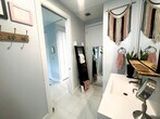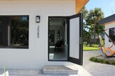Modern single-family home built 2021. Located near downtown Delray Beach in quiet historical neighborhood near US1/Federal Hwy & Beaches. Large open kitchen and spacious floor plan for a with private washer & dryer. Everything new 2021! Front covered patio & back patio. Hurricane impact windows & doors. High ceilings with recessed lighting! Custom roll-down shades. 24x24 tile wall-to-wall. New appliances, central air-conditioning, instant tankless hot water system, serene lush landscaping with exterior artwork throughout, whole house water filtration system, off-street parking for 2 cars. Quiet serene area. No HOA! Quick Approvals! Water/sewer included in rent. Pet-friendly