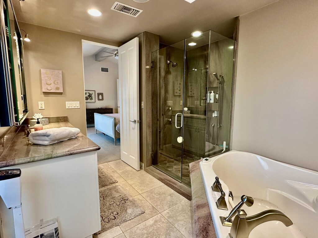 Welcome to your dream homea fully renovated gem that seamlessly blends modern elegance with functional design. This stunning residence features 2 spacious bedrooms and 1 versatile den,offering two pull out beds. With 2 beautifully updated en-suite bathrooms and a powder bathroom,each meticulously designed with high-end finishes,you'll enjoy both style and convenience. The open-concept living area boasts sleek,contemporary design elements,from the chic flooring to the state-of-the-art kitchen appliances and fixtures. Natural light pours through large windows,accentuating the fresh,neutral color palette and creating a warm,inviting ambiance. The gourmet kitchen is a chef's delight,complete with custom cabinetry,a large island with seating,and top-of-the-line appliances. Step outside to your private outdoor space and side yard,perfect for entertaining or relaxing in tranquility. This home is a true outdoor oasis,featuring a shimmering pool and a soothing jacuzzi that invite you to relax and unwind. A spacious back patio overlooks breathtaking views of a tranquil lake,a lush golf course,and majestic mountains,creating a serene and picturesque setting. The cozy seating area,complete with stylish furnishings,is perfect for hosting gatherings or simply soaking in the beauty of your surroundings. Whether it's a quiet evening under the stars or a lively afternoon by the pool,this outdoor retreat offers unparalleled comfort and elegance.