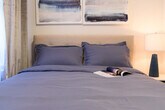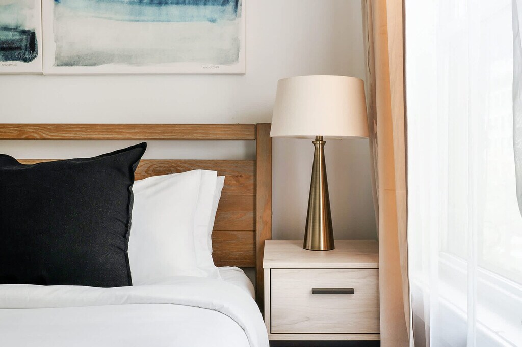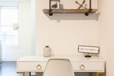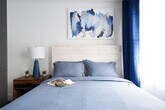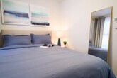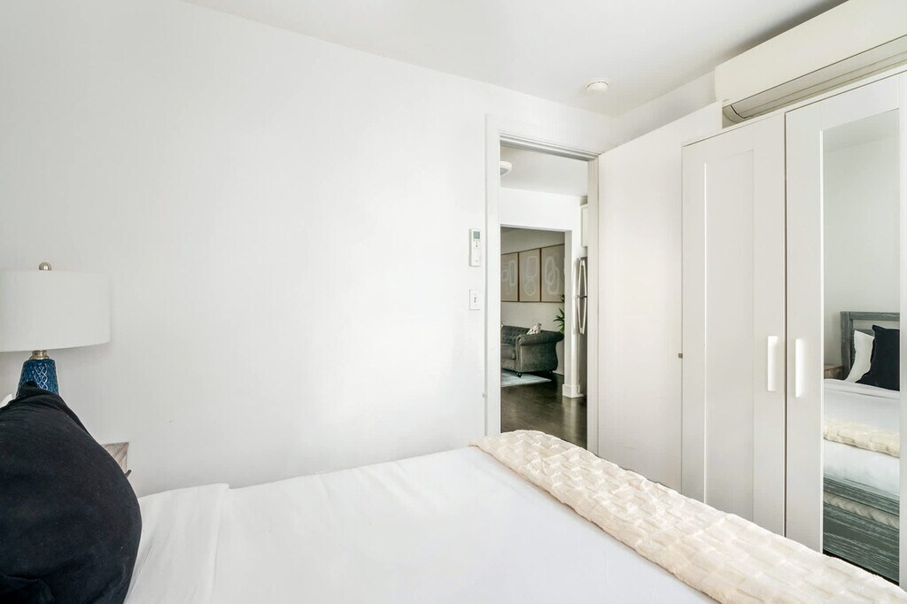 Welcome to this brand new 3-bedroom apartment, newly renovated and located in the prime Hudson Yards area. The first bedroom features a queen-size bed with windows that allow natural light to illuminate the space. The apartment is adorned with neutral décor and modern furnishings throughout. The second bedroom also includes a queen-size bed, complemented by neutral décor against blue velvet curtains and a full-length mirror covering the closet. The third bedroom offers a full-size bed, and the spacious living room includes a queen-size sofa, a large dining table, and a desk that serves as a home office. This apartment is perfect for unwinding after a long day in NYC, featuring a dining table, smart TV, and state-of-the-art kitchen appliances. With plenty of desk space and Wi-Fi, you can easily get work done and stay connected. The apartment includes ample desk space and Wi-Fi, making it ideal for remote work and staying in touch. [SI]