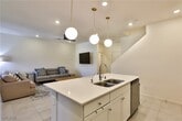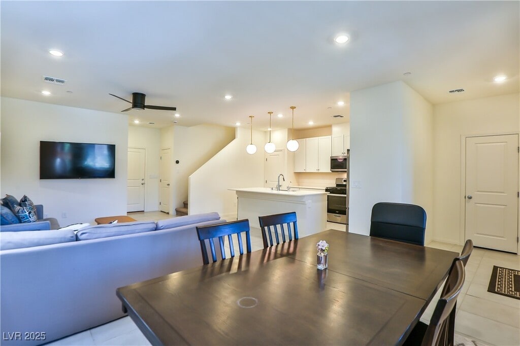 Welcome to this beautifully maintained 3 bedroom, 2.5 bathroom townhouse located in the vibrant Inspirada community! Spanning 1,668 square feet, this home offers modern finishes and a functional layout perfect for comfortable living. Downstairs features durable tile flooring throughout, an open concept living space, white cabinetry, and recessed lighting that adds a clean, bright feel. Upstairs, enjoy the convenience of a separate laundry room, and unwind in the spacious primary suite complete with a walk in shower, separate soaking tub, and dual sink vanity. Situated in one of Henderson's most sought-after neighborhoods, you'll have access to parks, trails, pools, and great schools. Don't miss the chance to call this place home!