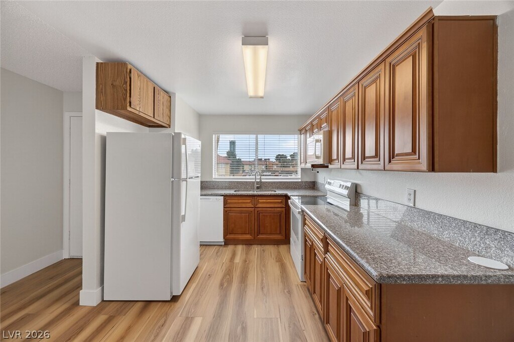 Be the first to live in this just updated condo. Features new Luxury vinyl wood plank flooring throughout the whole condo. Fresh 2 tone paint. New upgraded baseboards throughout. Kitchen with new never used upgraded 5 burner range, microwave, dishwasher. Fridge included. This wonderful central location condo right in the heart of the city. Condo sits on 2nd and 3rd floors so no one above you. Entry leads you into the kitchen and dining area combo. Nice size kitchen with granite counters and nice wood cabinets for a warm feel. Living room has the balcony off of it and overlooks pool area. Upstairs are two nice size bedrooms. Main bath with newer vanity, granite counter and nice marble look tub surround. This condo has it all. Near China Town, bus lines, to many restaurants to count, shopping, I15 & the strip. Nice complex, not to large. Nothing more to want in this fully updated condo that is in move in condition. Bring your style into this wonderful condo to create your perfect home.