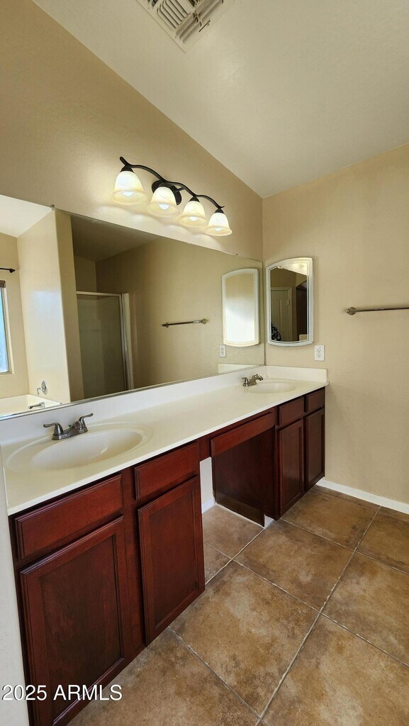 This home has 3332 Sq Ft,5 Bd/3Ba,NEW HVAC,SOLAR,3 CAR GARAGE,1 Bedroom and 1 full bathroom downstairs. All appliances are included. Oversized primary suite upstairs with double doors. Primary Bathroom has separate tub and shower,double vanity sinks,and a large closet. Floor plan has a spacious front room with formal dining room. Kitchen has ALL NEW APPLIANCES,granite countertops,plenty of cabinetry,large kitchen island,great countertop space,and a farmhouse sink overlooking the backyard. The kitchen opens up to dining room and large living room. Backyard has an extended patio,desert landscaping with a raised garden bed.***Landlords will allow you to paint the interior with approval**
