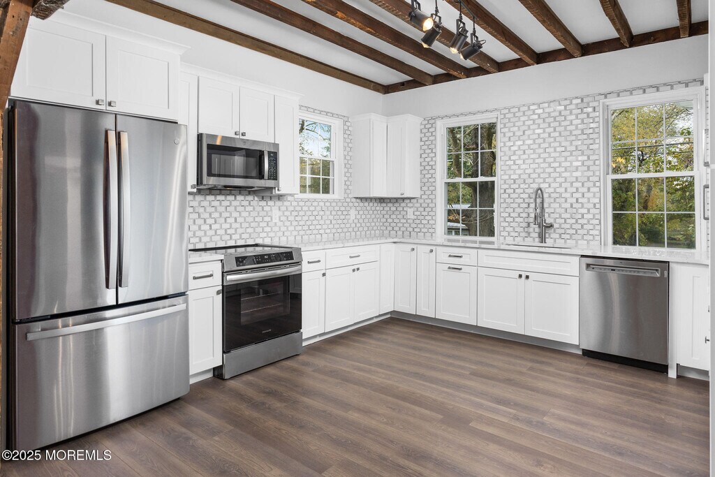 Circa 1681 4 bedrooms 2 1/2 baths beautifully restored farmhouse with no expense spared. This historic home has been thoughtfully renovated,blending timeless character with modern luxury. Step inside to a bright brand-new kitchen showcasing stainless steel appliances,quartz countertops,and an elegant marble mosaic tile backsplash. Enjoy 2½ stunning new bathrooms,each finished with marble mosaic tile throughout. Upgrades continue with new lighting throughout the home,updated electric,a new electrical panel,and new plumbing in the kitchen,bathrooms,and laundry room. Additional updates include painting the inside of the house from top to bottom,a new stairway to the basement,new steel beams in the basement encased in new concrete,structural wall built outside the back side of the house,multi-zone HVAC system,sump pump,water filtration system,dehumidifier and hot water heater. The home's original floors have been beautifully restored,complemented by new luxury vinyl plank flooring in the kitchen,dining room,laundry area,and one of the bedrooms. A newly added laundry room and mudroom offer a large closet and comes equipped with GE Profile washer and dryer. This property also boasts a new well and a 5-bedroom septic system. The front entrance opens into a wide,22' x 8' grand foyer with a gorgeous half bath. An addition set of stairs can be accessed through the kitchen that leads to one of the bedrooms. The main level includes a family room,living room,dining area,kitchen,full bath,mudroom and laundry room. Upstairs,you'll find four spacious bedrooms and a full bath,plus 2 bonus rooms on the third floor offering endless possibilities. This historic gem is truly a perfect balance of old-world charm and modern comfort move-in ready. Located in the village of Georgetown,Mansfield Township,within the highly desired Northern Burlington School District and Columbus elementary. Fun historical facts: This house was once owned by many prominent government officials and 4 US Postmasters. Underneath the Rotunda was the original Georgetown Post Office,which was once a mail/stagecoach stop. It eventually closed in 1920 when the Columbus Post Office opened. At one point,the breakfast room- now laundry room,mudroom and full bathroom was once the local Doctor's Office with the entry being in the Laundry Room. Files from previous owners indicate that this home was originally named "Newbold Messuage" Mansfield township is a beautiful tucked away rural area surrounded by farms and open farm land. It is conveniently located an hour from the Jersey shore and Philadelphia. Close by are NJ/Pa Turnpikes,Routes 206,130 and 68. For renters peace of mind many documents available include receipts for major work performed,architect drawing for the basement walls,new well and septic installs. Garage is excluded from the rental.