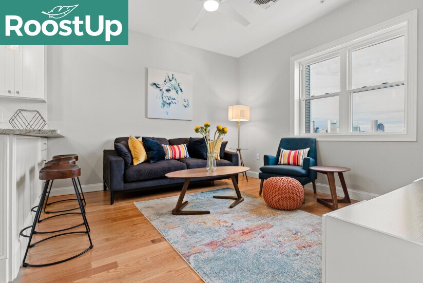 No broker fee! Only last month deposit needed. RoostUp is offering a beautifully renovated private bedroom with ensuite bath in South Boston. Less than a 15 minute walk to Broadway MBTA Red Line train station in a 5 bedroom/4 bath apartment. Check out RoostUp's 100+reviews averaging 4.8-stars on Google and Facebook. Completely furnished all-inclusive concept from RoostUp. Fully-equipped kitchen included with granite countertops, new appliances and 4K Smart TV. RoostUp amenities include all utilities, high-speed WiFi, in-unit laundry, central air, and bi-weekly cleaning. Here's what is included: Furnished private bedroom with private ensuite bath ------------------------------------------------------ - New bed and high quality mattress - Matching dresser with desk, lamp and chair - Full length mirror and coat rack - Custom closet system with built in storage Stocked kitchen and furnished living area ------------------------------------------ - Renovated kitchen with new countertops & stainless steel appliances - Kitchenware, dishes, glassware and flatware - Fully furnished including sofa, chairs, coffee table - 4K Smart TV Utilities & Cleaning ------------------- - All utilities (gas, electric, wifi) - Bi-weekly professional cleaning - 1Gbps WiFi - Keyless smartphone locks - Central A/C - Free in-unit laundry - Weekly trash and recycling removal - Included for one flat monthly fee RoostUp never charges a broker fee or security deposit. Only First and Last Month Rent due at lease signing. Sorry, no pets. The RoostUp application process includes a credit and background screening. International applicants can submit copies of valid passport & visa. Please note there is an application process that includes a credit and background check.