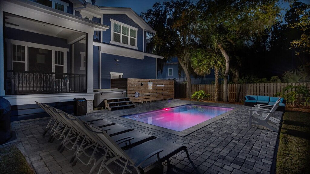 Welcome to 36 Firethorn Lane, your perfect family vacation destination in South Forest Beach, Hilton Head Island. This spacious 6-bedroom home features luxurious amenities, including a heated pool, hot tub, and a large backyard, ideal for relaxation and play. Enjoy two master suites with en-suite baths downstairs, three more king bedrooms upstairs, a fun bunk room with foosball, and a cozy family room with a large TV. The fully equipped kitchen and dining area, while the screened porch overlooks the pool. Convenient beach supplies in the garage complete your ideal getaway. Discover your perfect getaway at Deja Blue, a stunning 6-bedroom, 4 full and 2 half-bathroom vacation home nestled in the sought-after South Forest Beach neighborhood of Hilton Head Island. With accommodations for up to 16 guests, this home is ideal for large family gatherings, reunions, or group vacations. The property features two luxurious master suites on the main level, each with en-suite bathrooms, offering ultimate comfort and privacy. Upstairs, you’ll find three spacious king bedrooms, two sharing a modern hall bath, and a fun bunk room equipped with a foosball table, perfect for kids and teens. The bright, open living area invites everyone to gather and relax, with a large flat-screen TV and plenty of seating. If you’d like to have the pool heated during your stay, it is available for an additional fee of $50 per day. Pool heating must be arranged for the entire duration of your stay and paid in full prior to your arrival. At Deja Blue, luxury amenities include luxury bedding from The Ritz Carlton for a restful night's sleep, complimentary spa heat and pool heat available, baby equipment including a Pack 'n Play, highchair, and umbrella stroller, indoor entertainment with a ping pong table and an indoor basketball hoop, a fully equipped kitchen with a second refrigerator/freezer, six backpack beach chairs and a beach wagon for effortless trips to the shore, and pet-friendly accommodations (dogs only, pre-approval required, fees apply). Located just steps from South Forest Beach, you’re within walking distance of pristine sands, restaurants, and outdoor activities. With beach supplies ready in the garage and space for up to five vehicles, Deja Blue makes it easy to enjoy all that Hilton Head Island has to offer. Nestled in a quiet neighborhood, 36 Firethorn Lane offers a serene retreat just a short walk from the beach. This peaceful setting allows you to unwind and relax while still being close to the sun, sand, and surf. Enjoy leisurely strolls to the shore, where you can soak up the sun or watch the waves roll in. The tranquil surroundings enhance your vacation experience, providing the perfect backdrop for family gatherings and moments of reflection, all while being conveniently located near Hilton Head Island's attractions and amenities. Your comfort and satisfaction are a top priority at 36 Firethorn Lane, and our attentive host is readily available to assist you throughout your stay. Whether you prefer to reach out via text, call, or email, you can count on prompt responses to any questions or concerns you may have. This open line of communication ensures that you have everything you need for a seamless and enjoyable vacation experience. Quiet hours are between 22:00 and 8:00. House-trained dogs are welcome with a fee of $250 per dog, with a maximum of two dogs allowed. The fireplace is not for guest use, and there is no smoking on the property. Free high-speed Wi-Fi is available throughout the home, ensuring you stay connected during your stay.