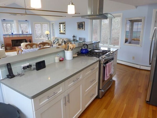 THIS IS A WEEKLY SUMMER RENTAL ONLY.THE WEEKLY PRICE IN AUGUST IS $5,500. PER WEEK.SEE WEB SITE FOR ADDITIONAL WEEKLY PRICING. Water views,3 acres and stone walls. At the end of a lane,enjoy the privacy offered by 49 acres of conservation land complete with walking trails. This house is a short distance from Lucy Vincent beach,as well as from Menemsha and Squibnocket. This spacious four bedroom,2 bath home has an expansive rear deck that offers panoramic water views. The main level offers an open kitchen and large living room complete with fireplace. An entire wall is floor to ceiling glass with French doors opening onto a large deck. All of the rooms on this floor offer stunning views,including the Master bedroom. The first level features a large family room and three ample sized bedrooms. Black Point Beach Key included with property!!! MLS# 72850761