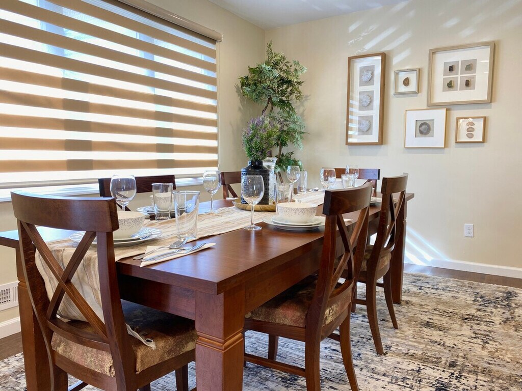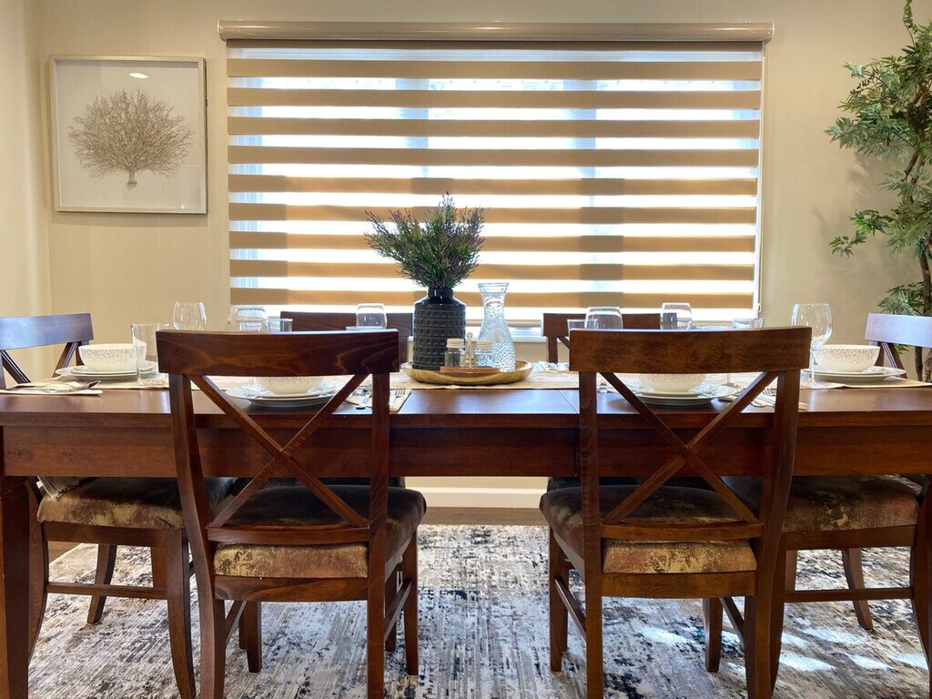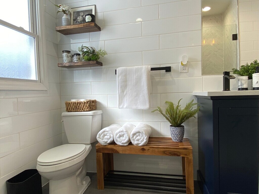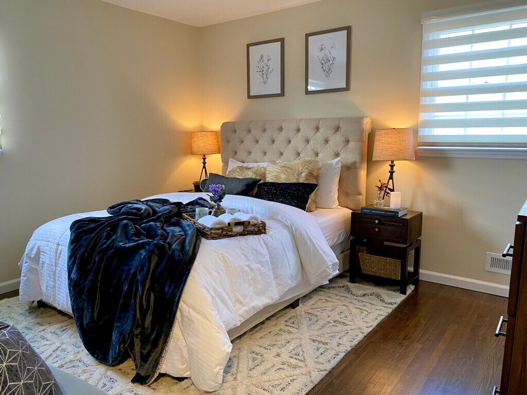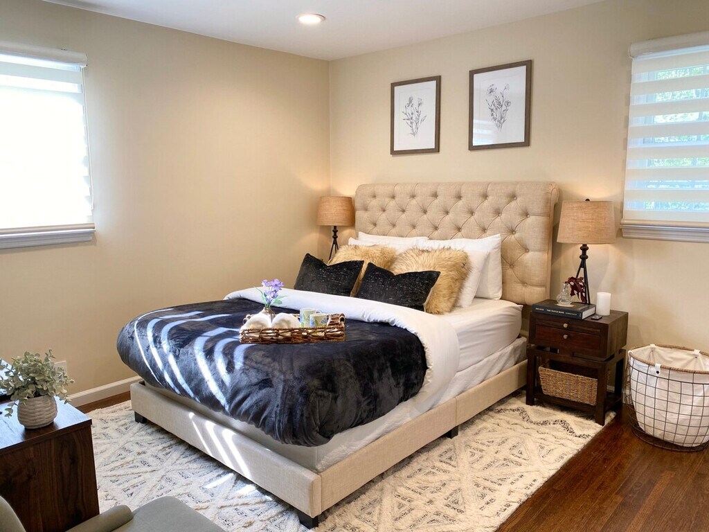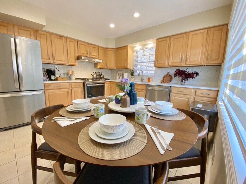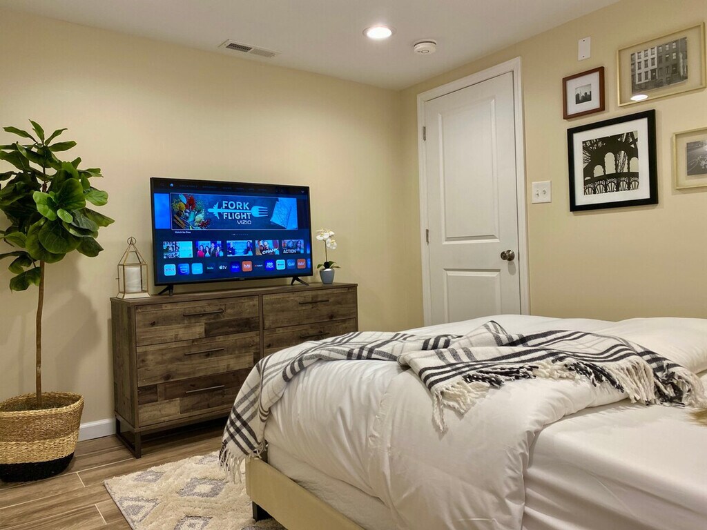 Experience a cozy classic two-story high ranch dream on the Jersey Shore! Conveniently located on a quiet street surrounded by nature yet just a short ride from the beach and Asbury Park, this home offers a tranquil retreat. You must climb a few stairs to enter using the front door of the home. Forget your worries as you step into this luxurious and cozy sunlit 5-bedroom, 2-bath smart home. Choose between having breakfast enjoying a view overlooking a sparkling stream through a large bay window in the eat-in kitchen or simply sit back and relax in the family room while watching your favorite TV show on a 65” smart TV. The upper level features a sunlit kitchen leading to a beautifully designed dining room with ample space to seat 6-8 adults, and three quaint and charming bedrooms with brand new mattresses. The large, gorgeous fully subway-tiled bathroom features a walk-in shower and tub, his and her sinks, and heated floors for those cold nights. The lower level offers a super cozy living room with a large genuine leather sectional, 65” smart TV, beautiful art, and a wood-burning stove. Additionally, there are two super comfortable bedrooms and a full bathroom with a walk-in shower. The laundry room features a spare refrigerator/freezer and a smart washer/dryer for your convenience. Private in-ground pool is only open during certain times of the year, please inquire first before booking. Conveniently located on a quiet street surrounded by nature yet just a short ride from the beach and Asbury Park, this home offers a tranquil retreat. This is a smart home equipped with smart light switches throughout the home that have sensors and a camera lens; however, they do not record or store any data online. They can be used as an intercom between devices, which only you have access to if you choose. These smart light switches are equipped to manually block the sensor by sliding the lever to cover the lens at any time. High-speed Wi-Fi and smart home connectivity make this home remote work-friendly. [SI]