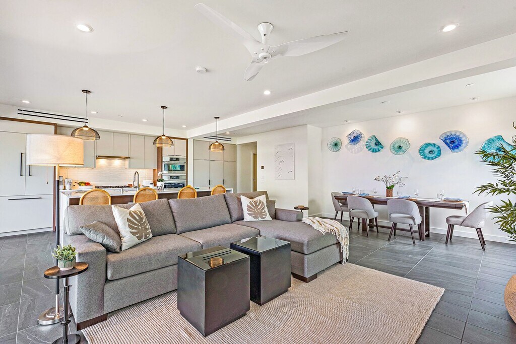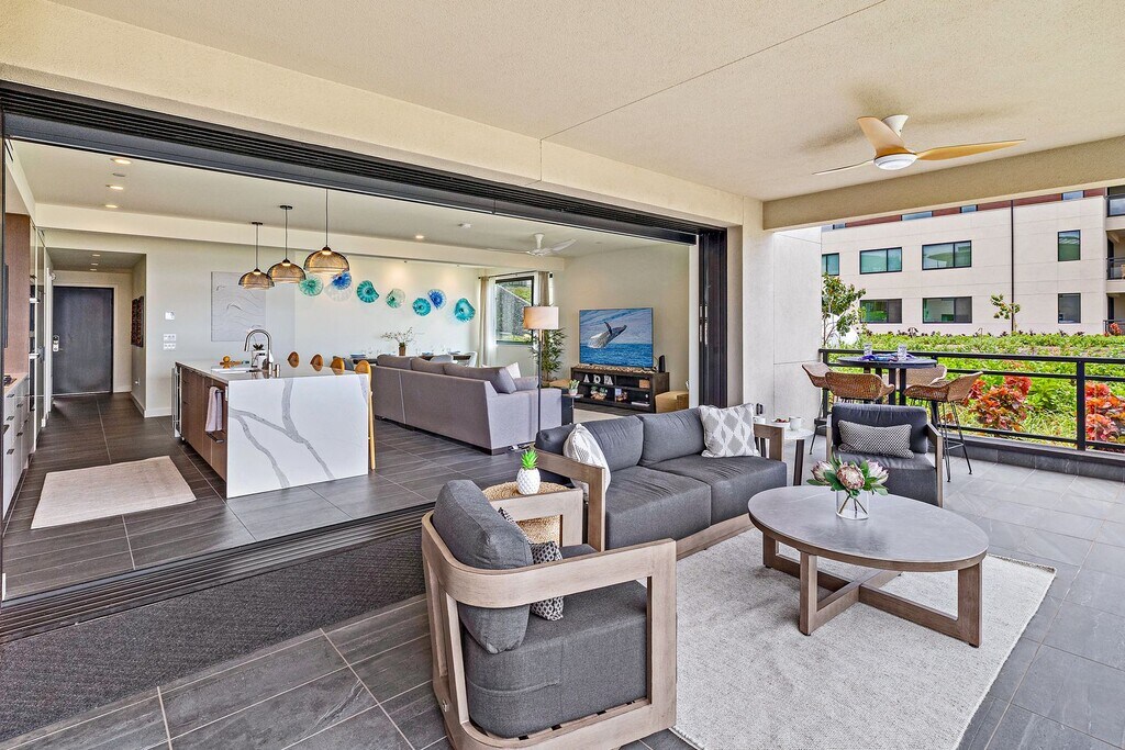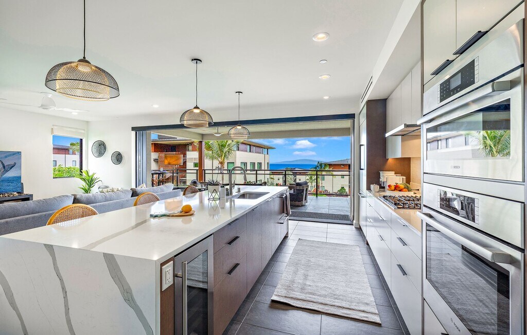 Experience luxury never lived in brand new stunning 2-bedroom, 2-bathroom condo nestled within a boutique building. Spanning an impressive 1375 sq. ft., this thoughtfully designed home seamlessly blends indoor and outdoor living, thanks to a grand sliding door that opens to a spacious 350sq. ft. lanai, complete with an outdoor wet bar and built-in BBQ – perfect for entertaining and enjoying the beautiful Hawaiian breezes. Set on a secure 13-acre property, the landscaped stepped terraces gently descend towards the ocean, creating a breathtaking backdrop. Residents will appreciate the convenience of underground parking with Tesla EV Charging and additional storage. A 2018 Lexus RX350 with very low milage will be included if needed in this rental price. Enjoy a range of exceptional amenities, including lawn games, an endless pool, a fully-equipped fitness center, and a spa. Plus, you'll be within walking distance to the renowned Wailea Blue Golf Course. This is more than just a home; it’s a lifestyle waiting for you.